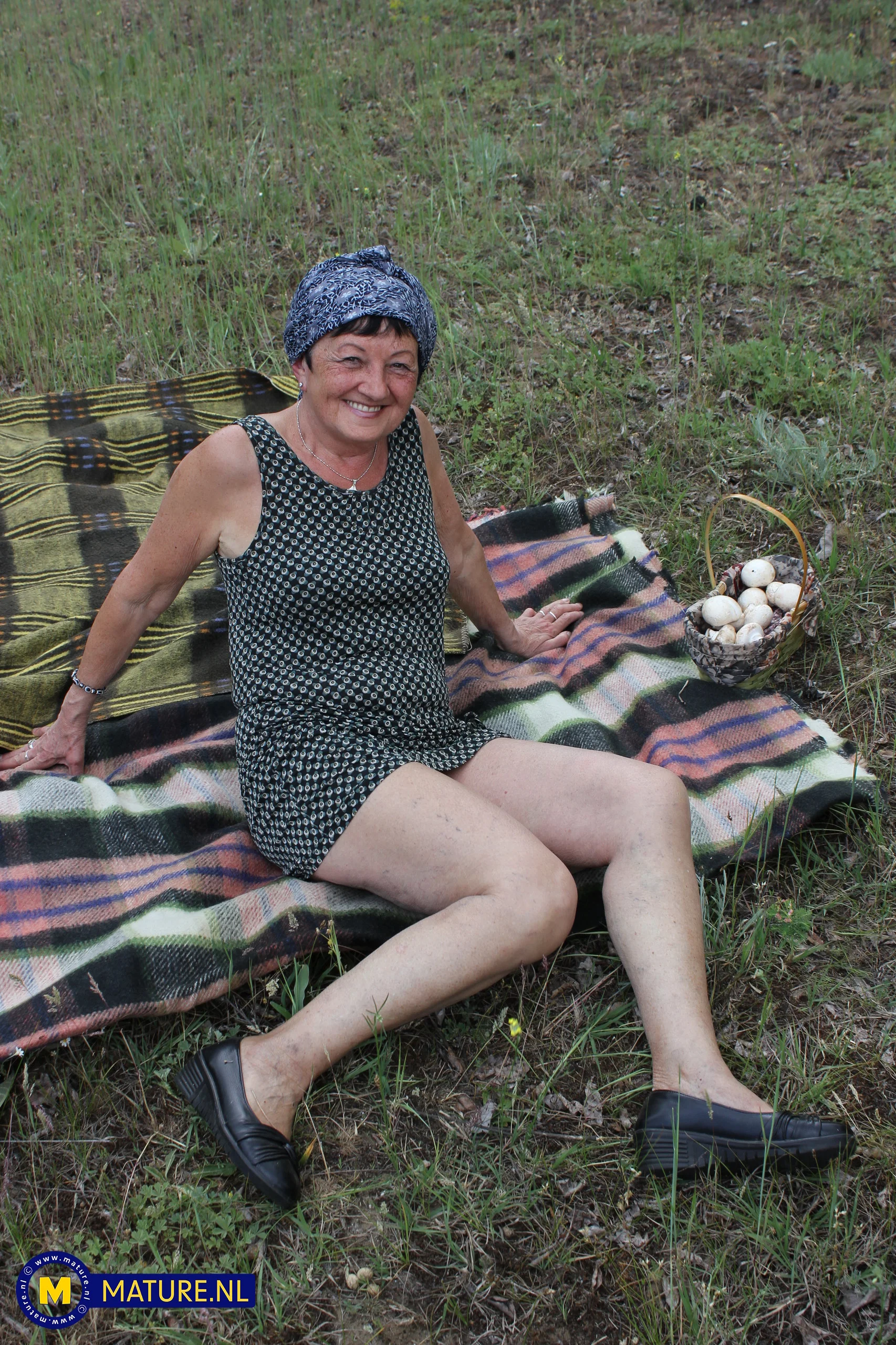 73 year old grandma Hanna D. seduced a younger stranger to fuck her in an open field