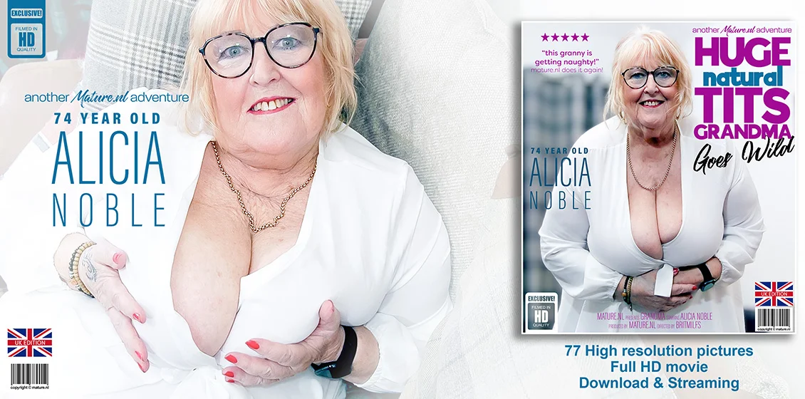 74 year old masturbating, huge tits granny Alicia Noble climaxes when she's alone and horny!