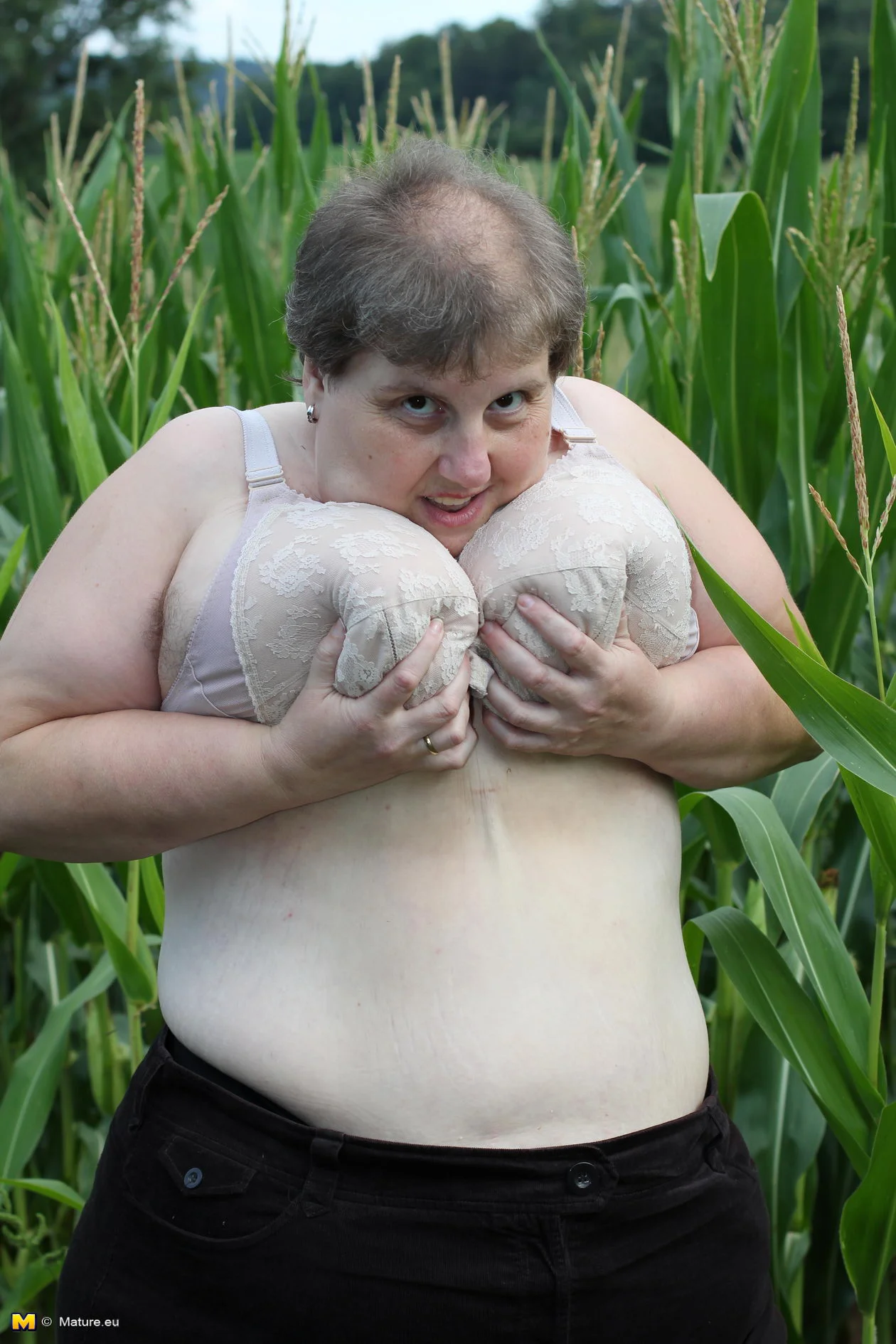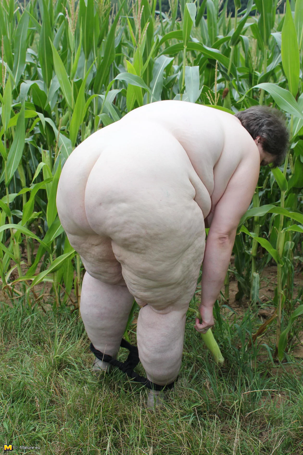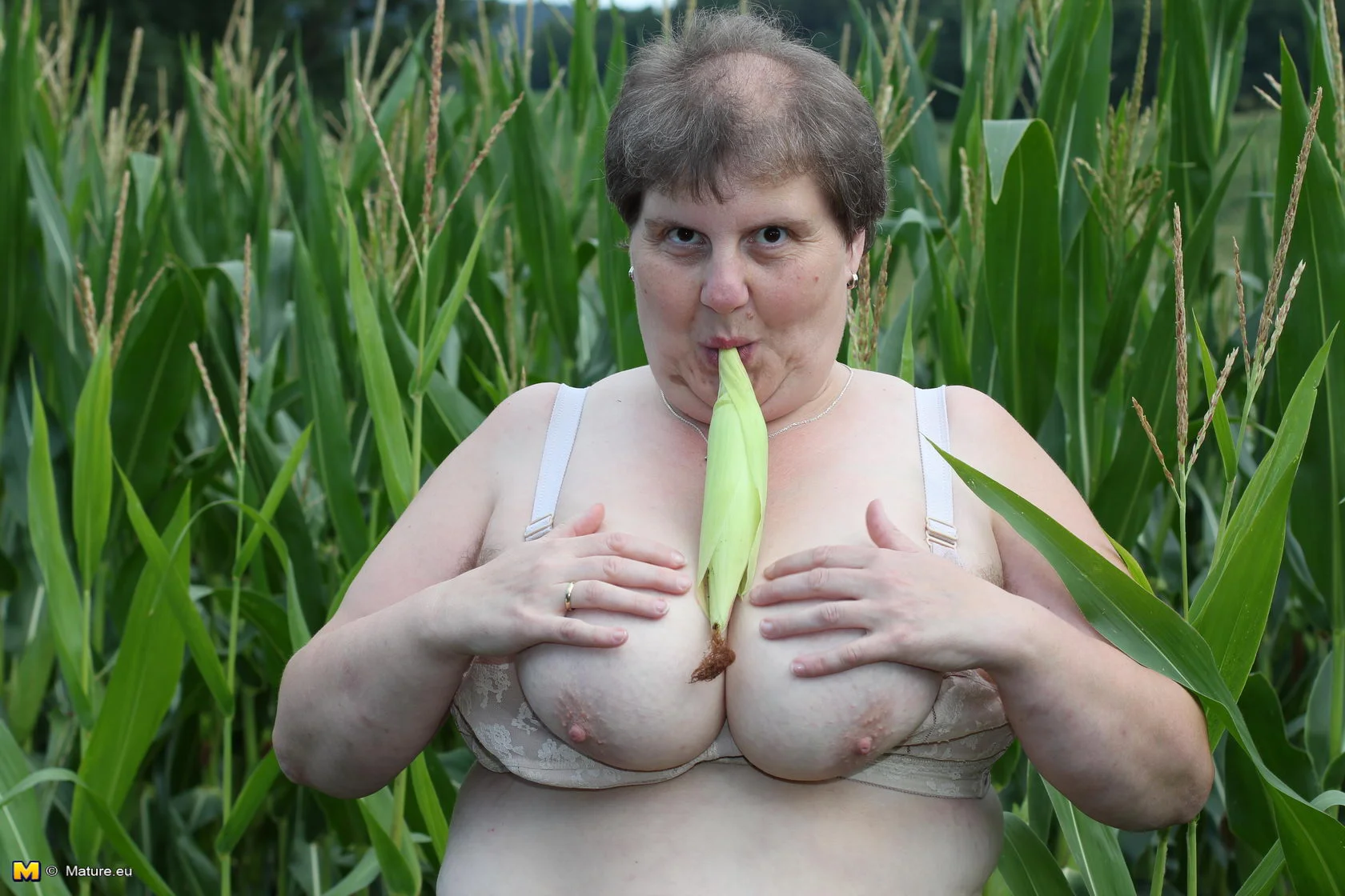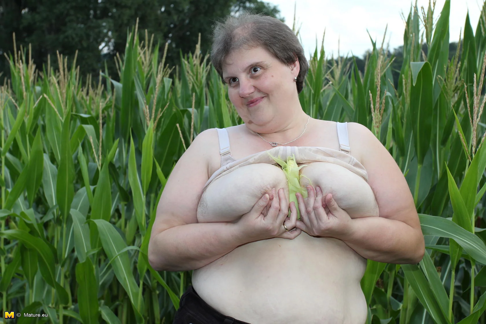 Big mature slut playing in a corn field