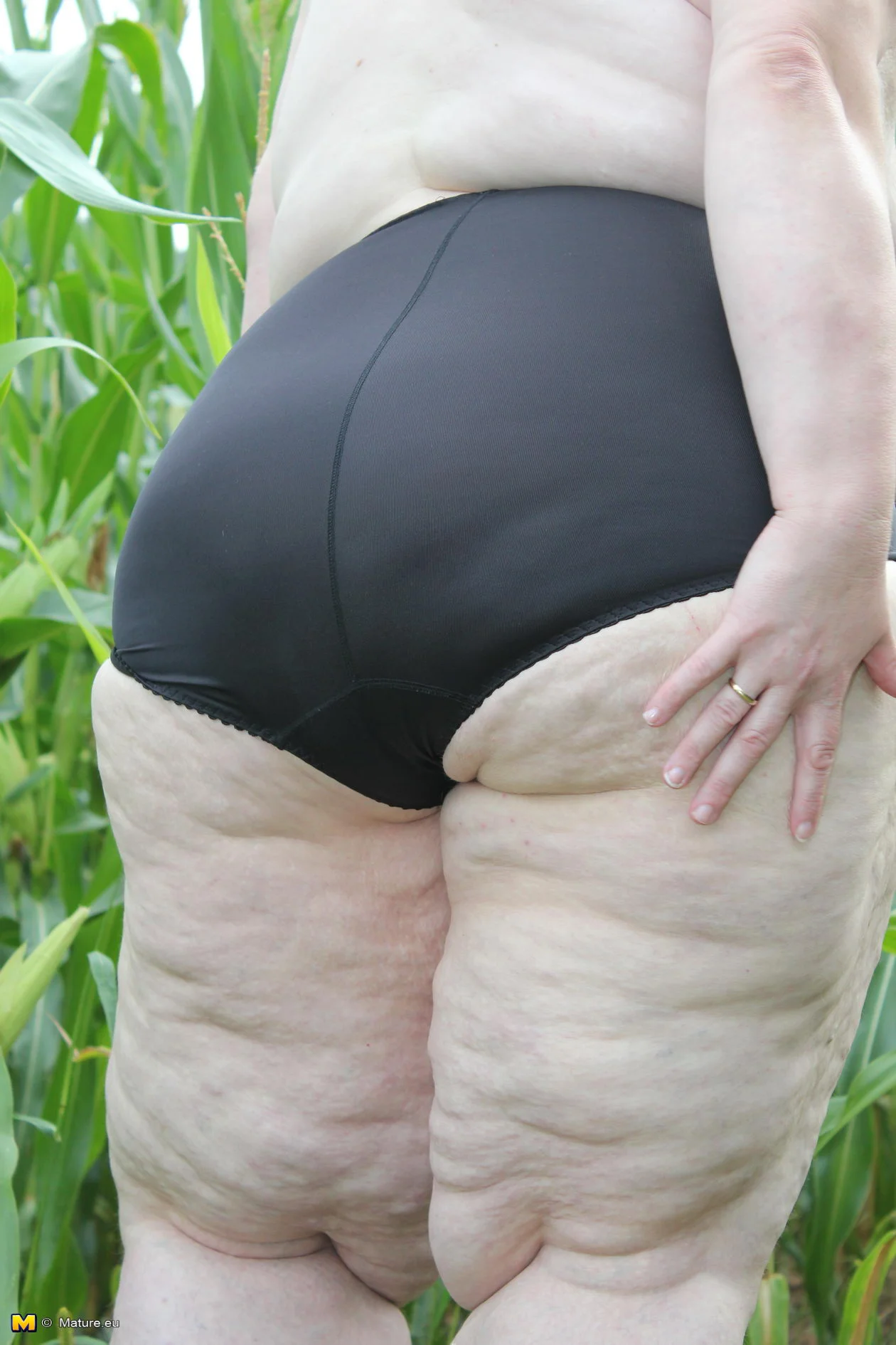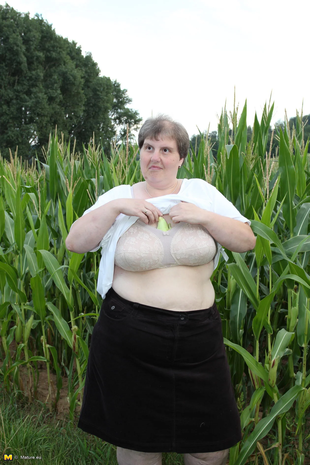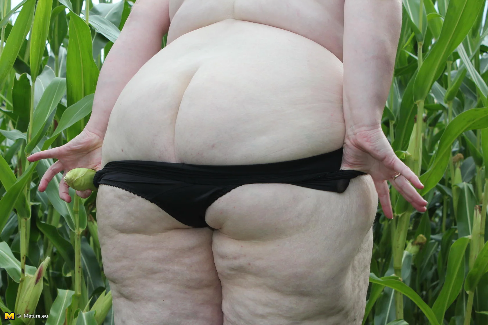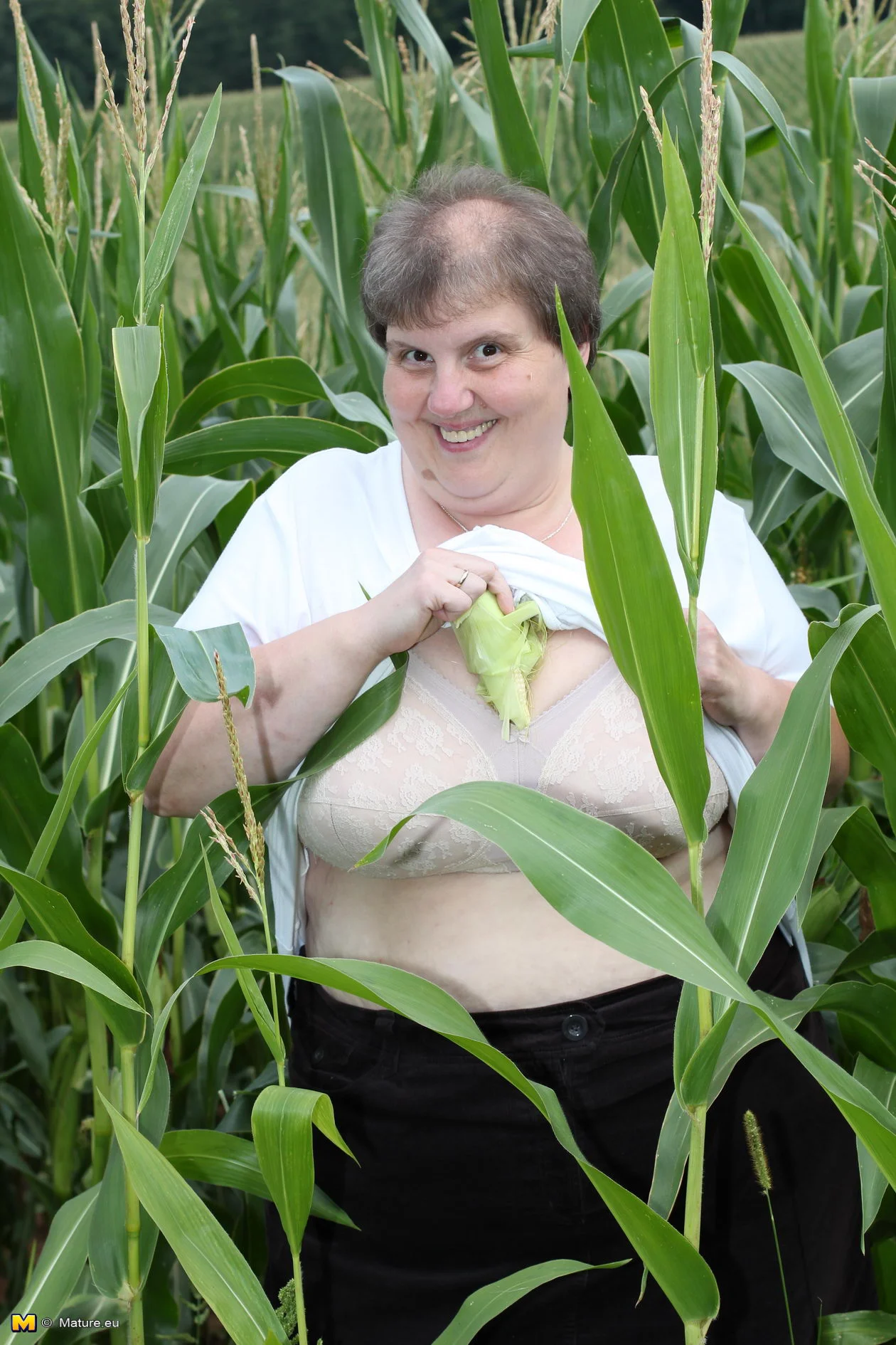 Big mature slut playing in a corn field