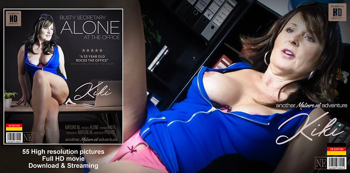 Busty German secretary Kiki R. is a naughty MILF masturbates her pierced pussy at the office