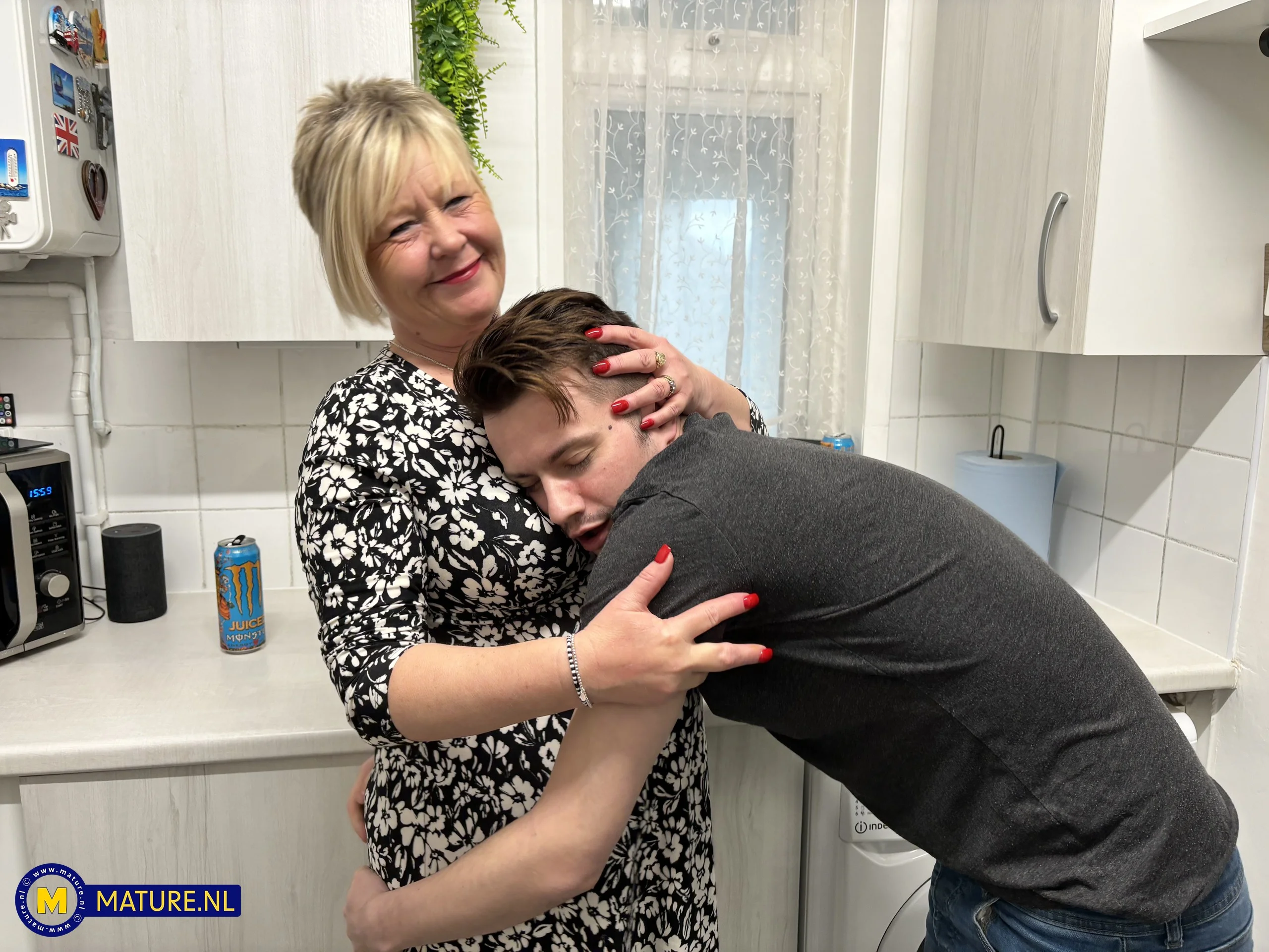 Curvy British GILF Chantelle is fucking and sucking a cheating young guy on the sofa