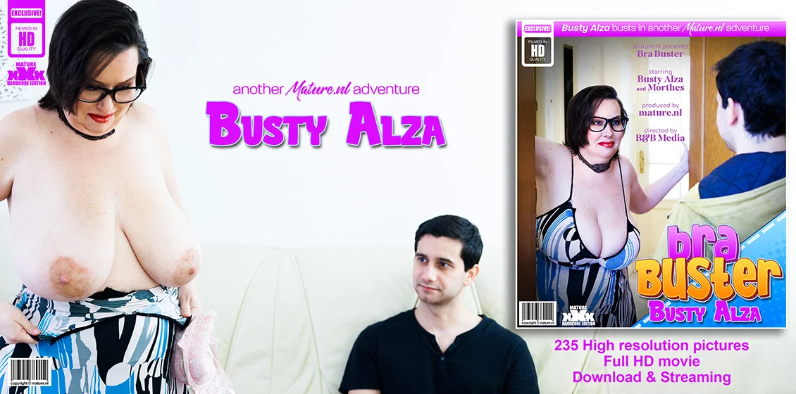 Curvy Milf Busty Alza with her big natural saggy tits is doing a young bra salesman