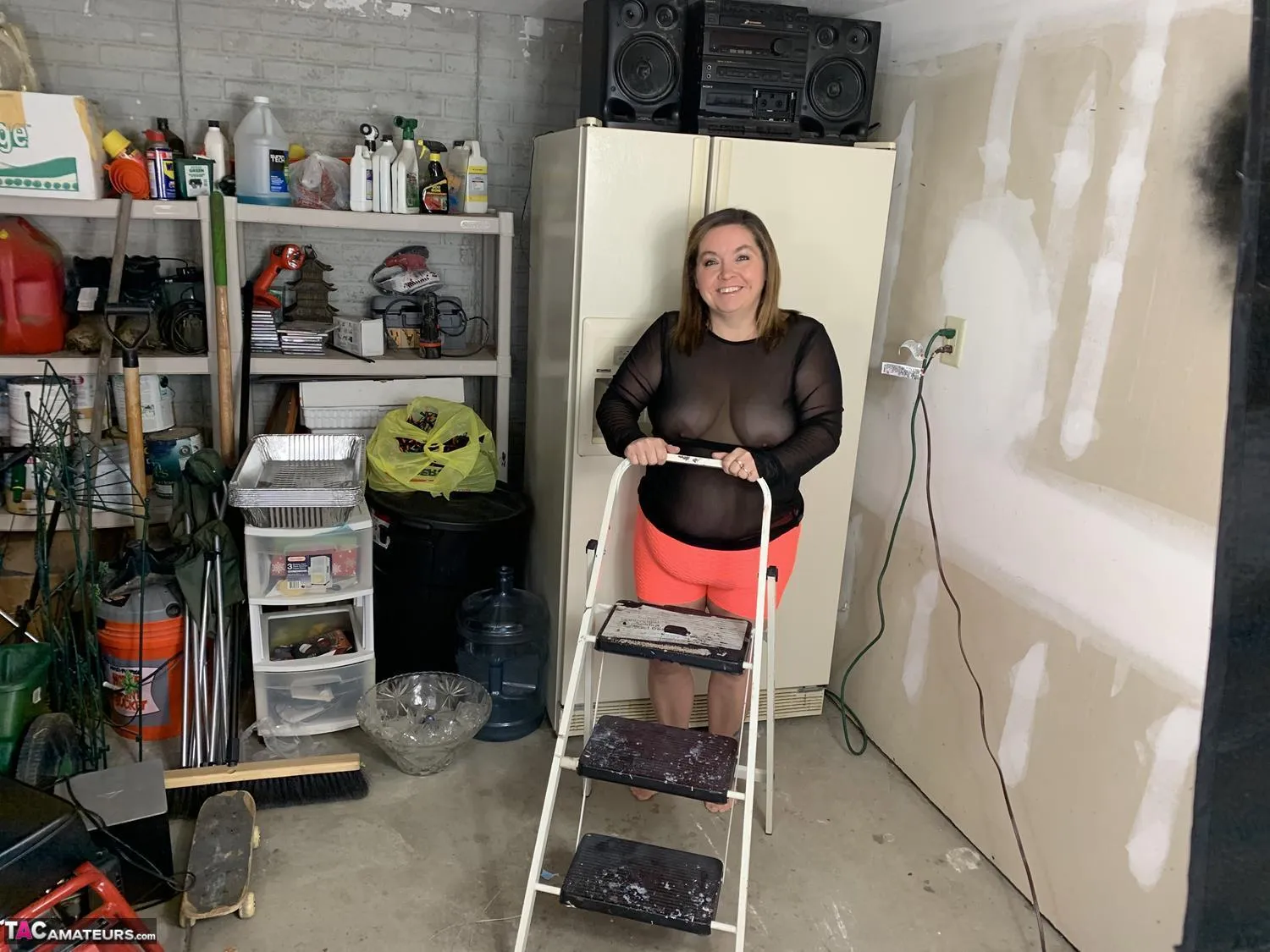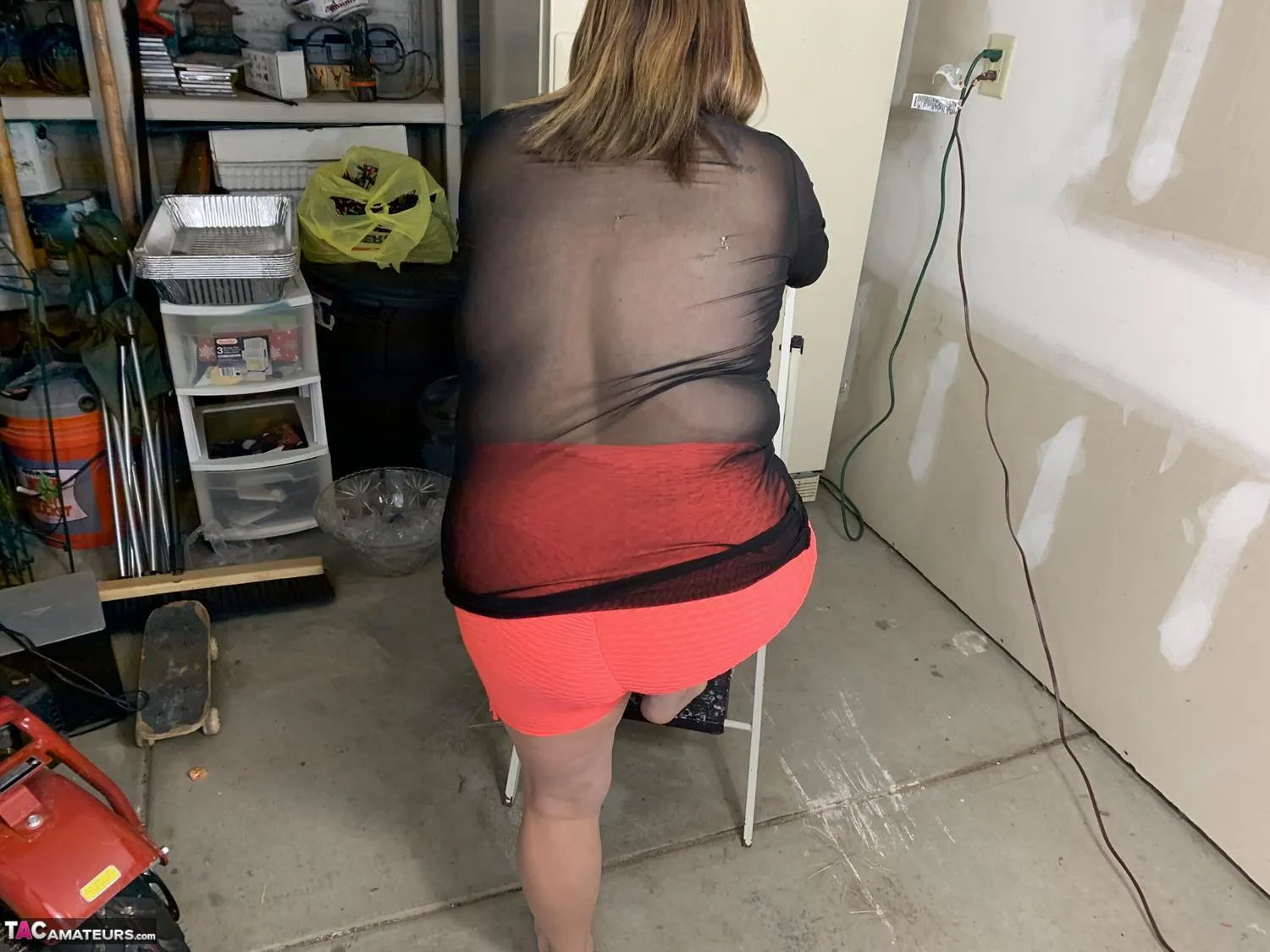 Before deep throating a fat cock until he came all over my face, I just had to make a photoset in my garage showing of m