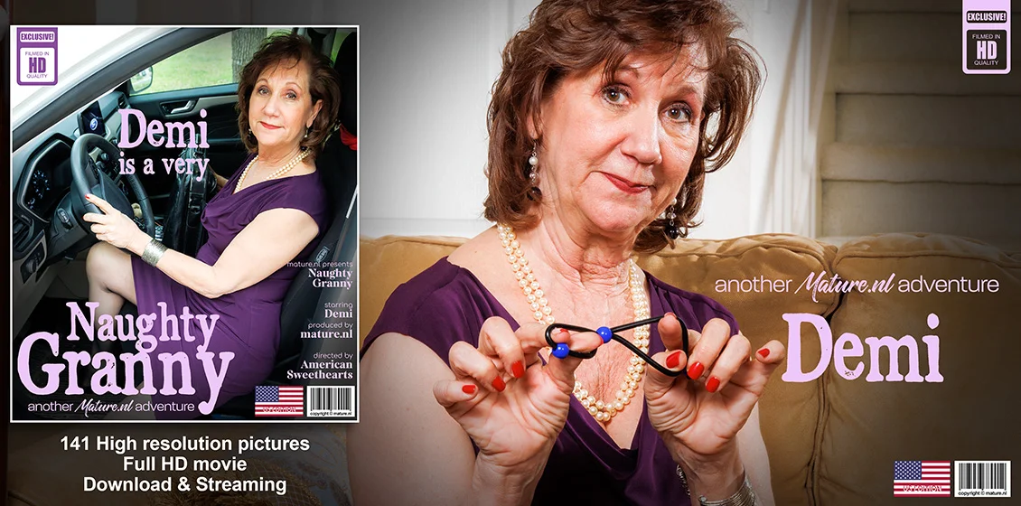 Demi is a horny American grandma that loves to play with her shaved pussy