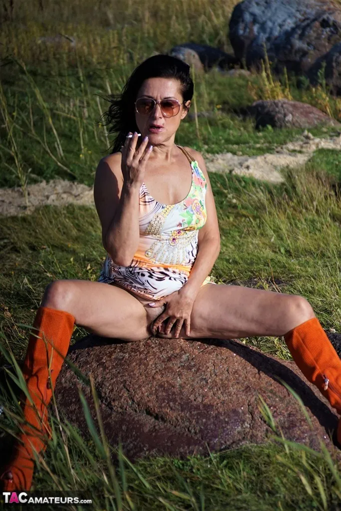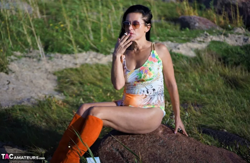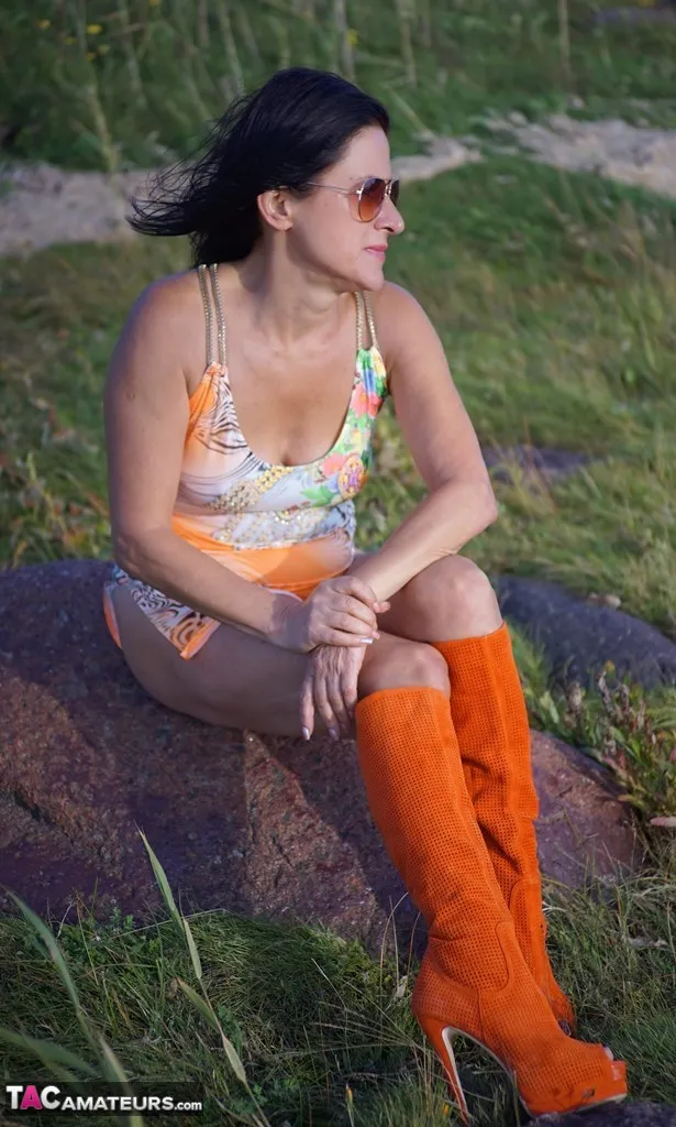Probably suede boots with high heels are not very suitable for walking on the marshy beach...But how well they look
