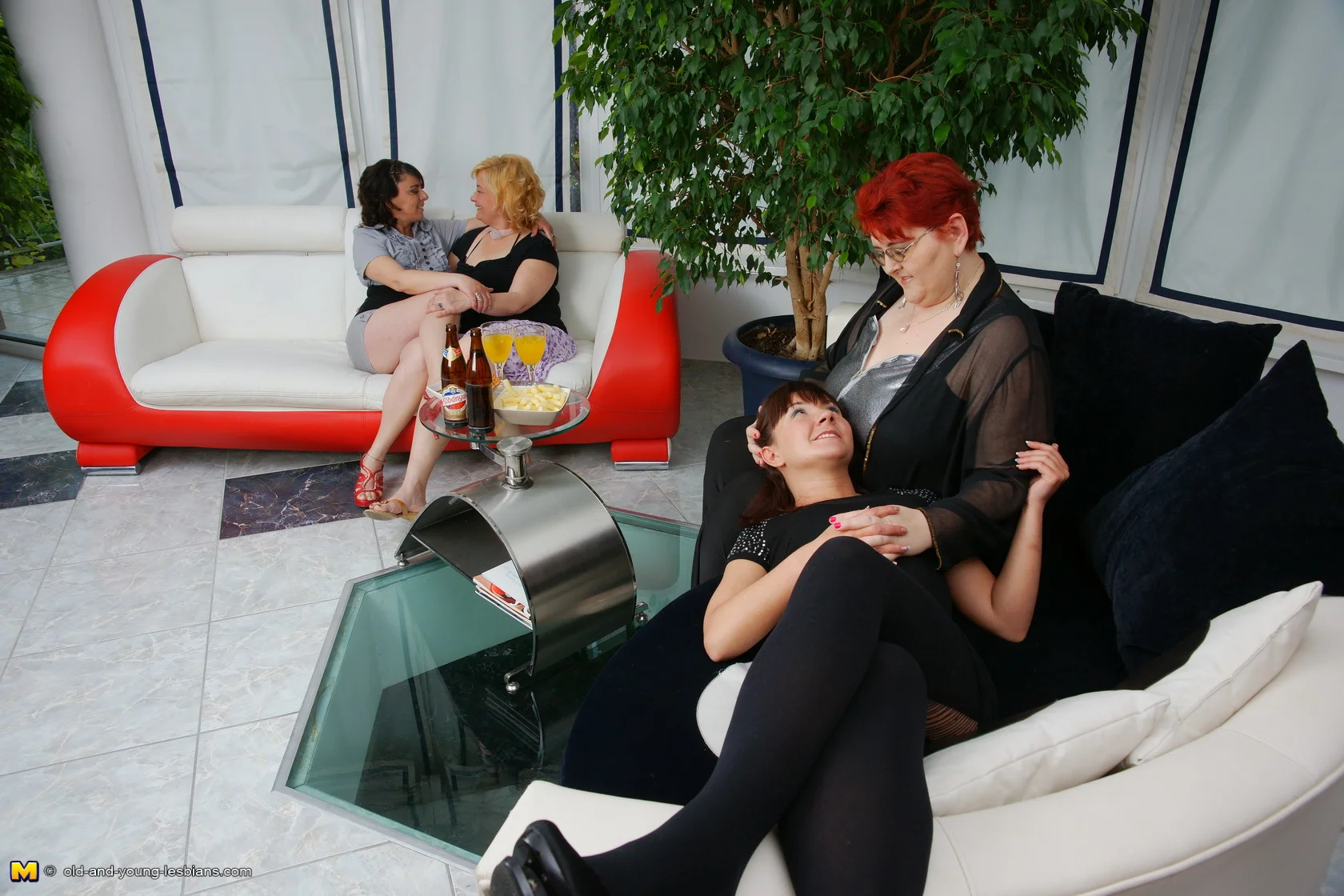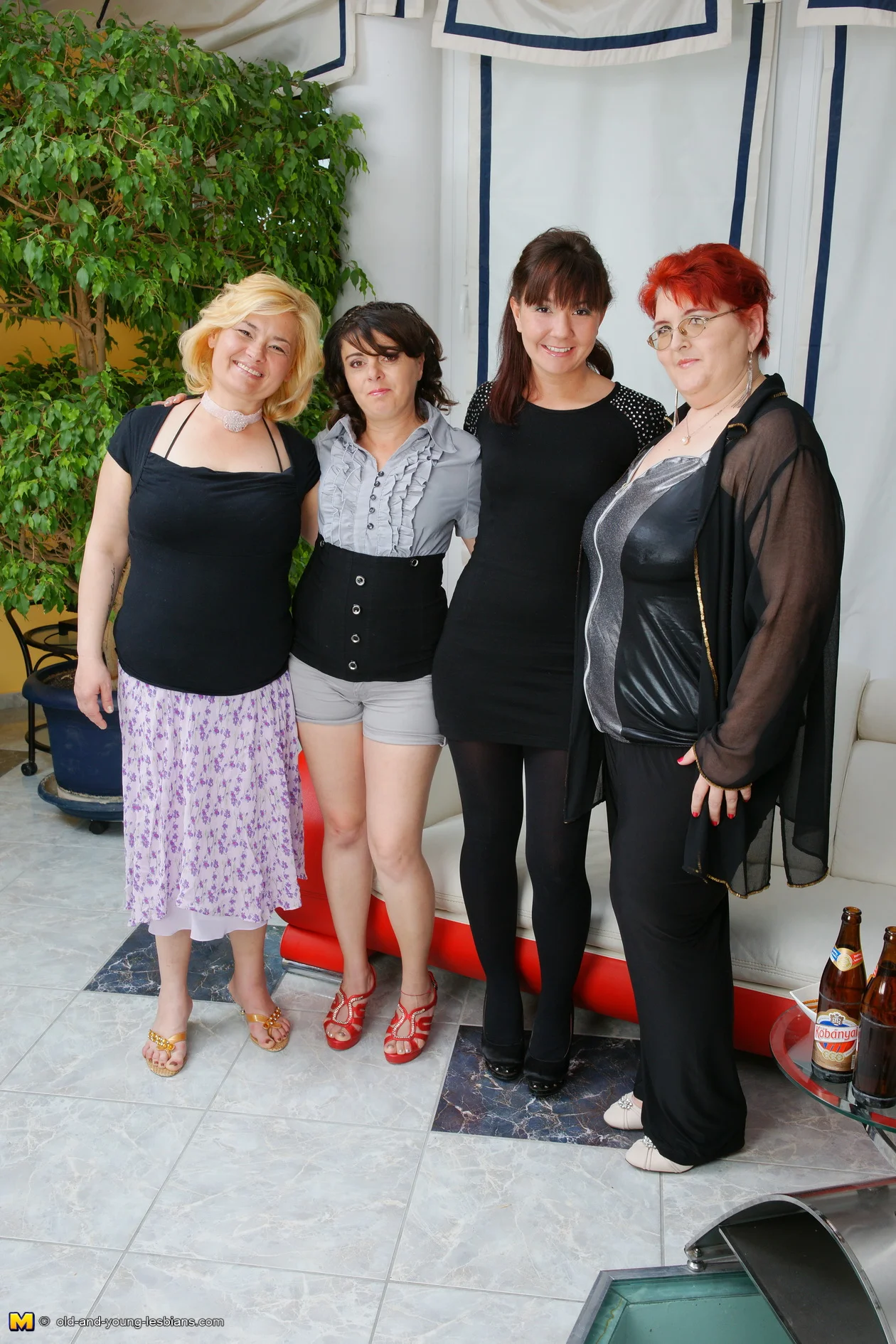 Four old and young lesbians having a party