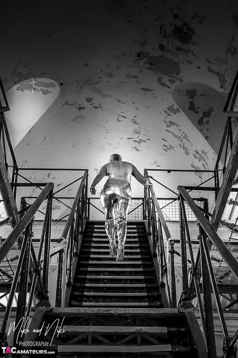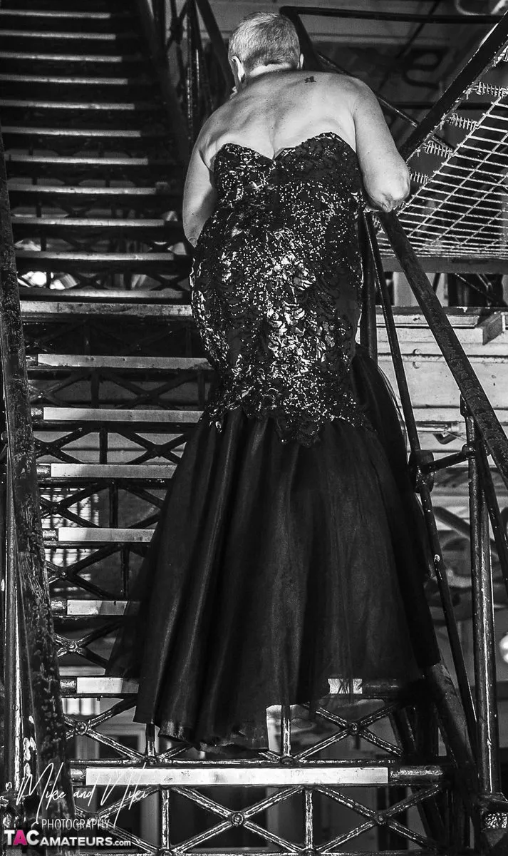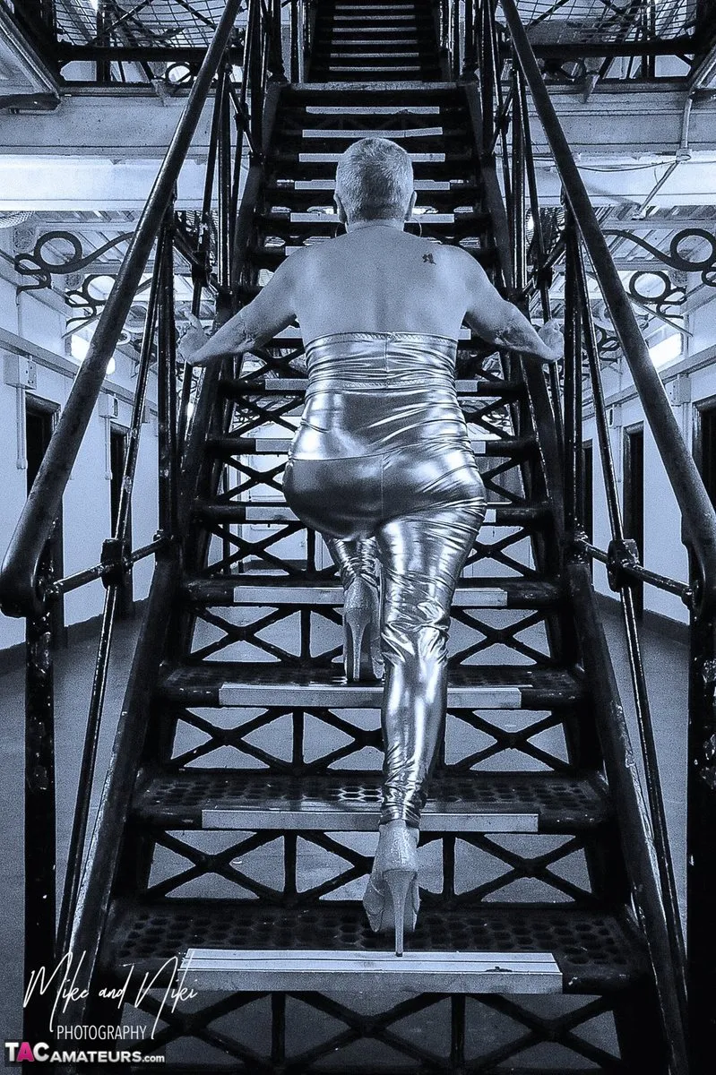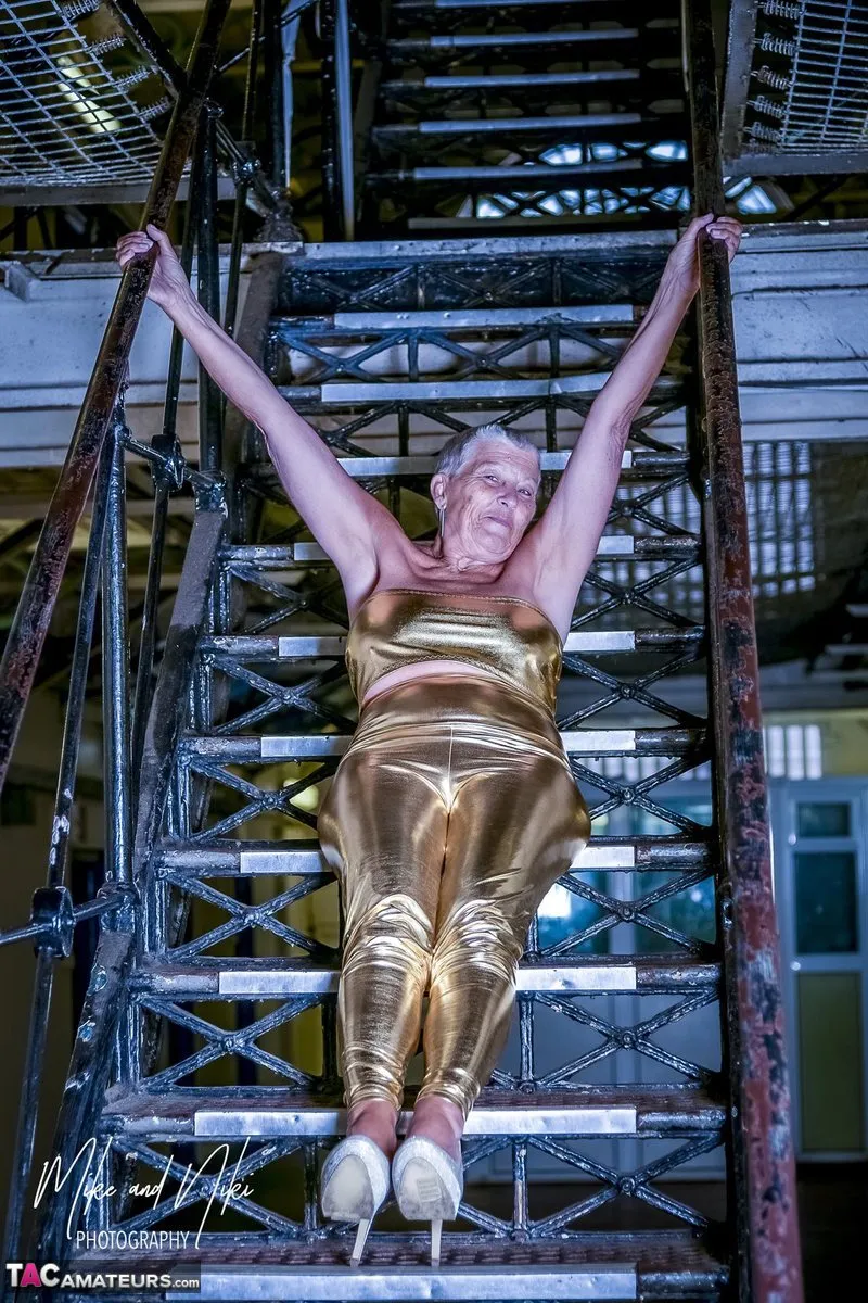 Hello guysLooking lovely in my golden leggings and black evening dress xx