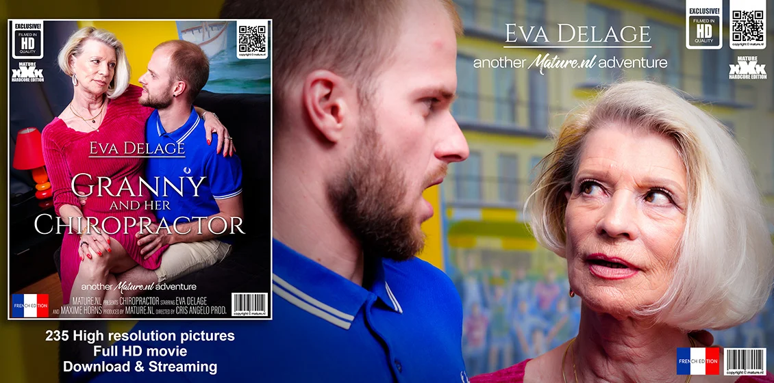 Granny Eva Delage loves fucking her young chiropractor at home