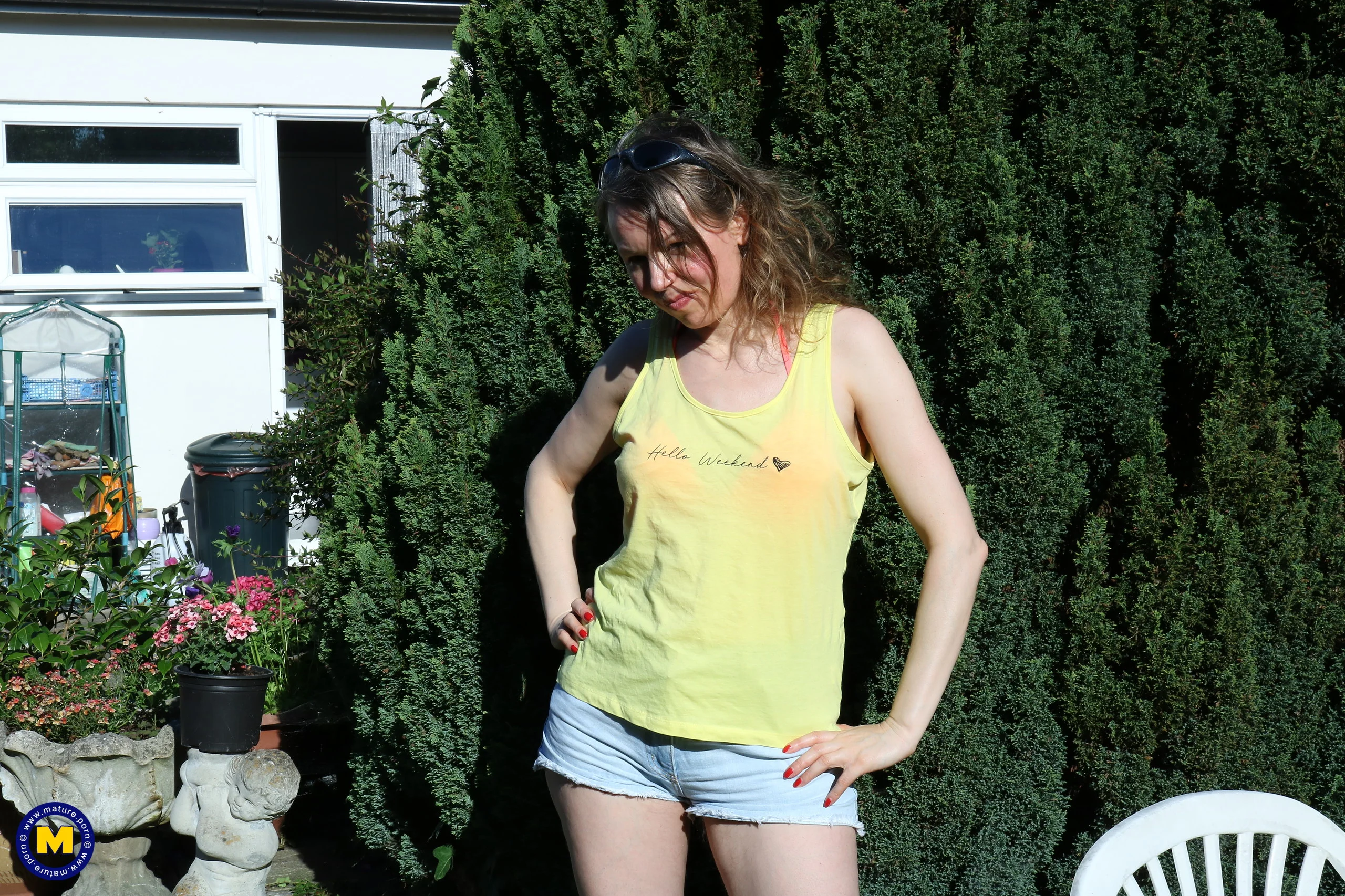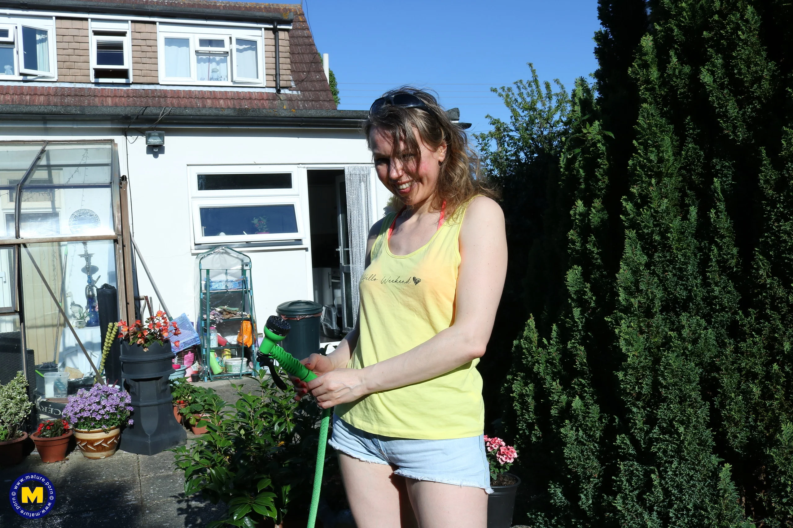 A sultry, confident mature woman enjoys a lazy afternoon in her sunlit garden, her natural beauty on full display. With her thick, luscious hair cascading freely, she sensually teases the cool water hose, letting the droplets glide over her soft, inviting curves. The warm sunlight highlights every inch of her perfectly hairy body, accentuating her raw, untamed allure. Her playful touches and slow, deliberate movements invite you to linger, imagining the sweet heat of desire building between each gentle spray. This intimate moment is a celebration of natural sensuality and unfiltered passion.