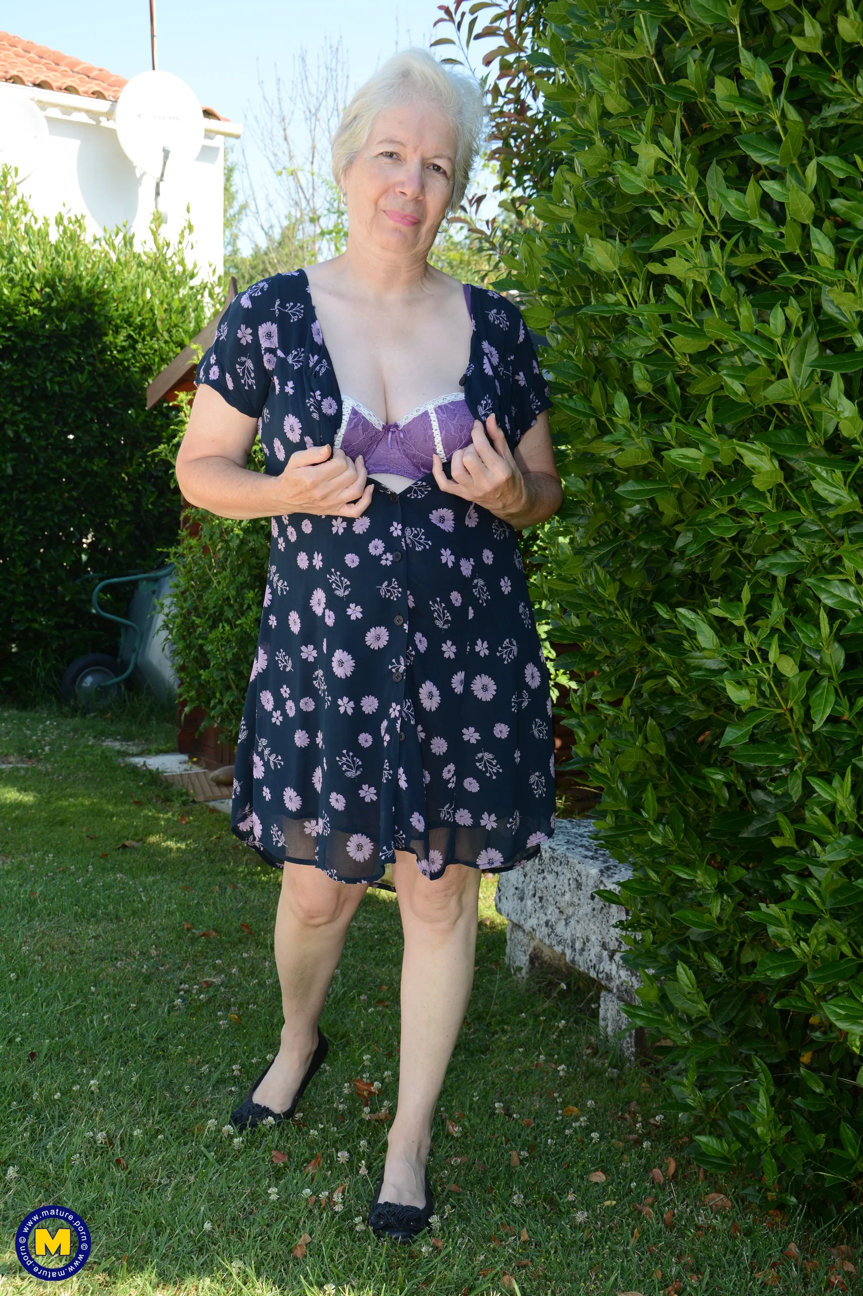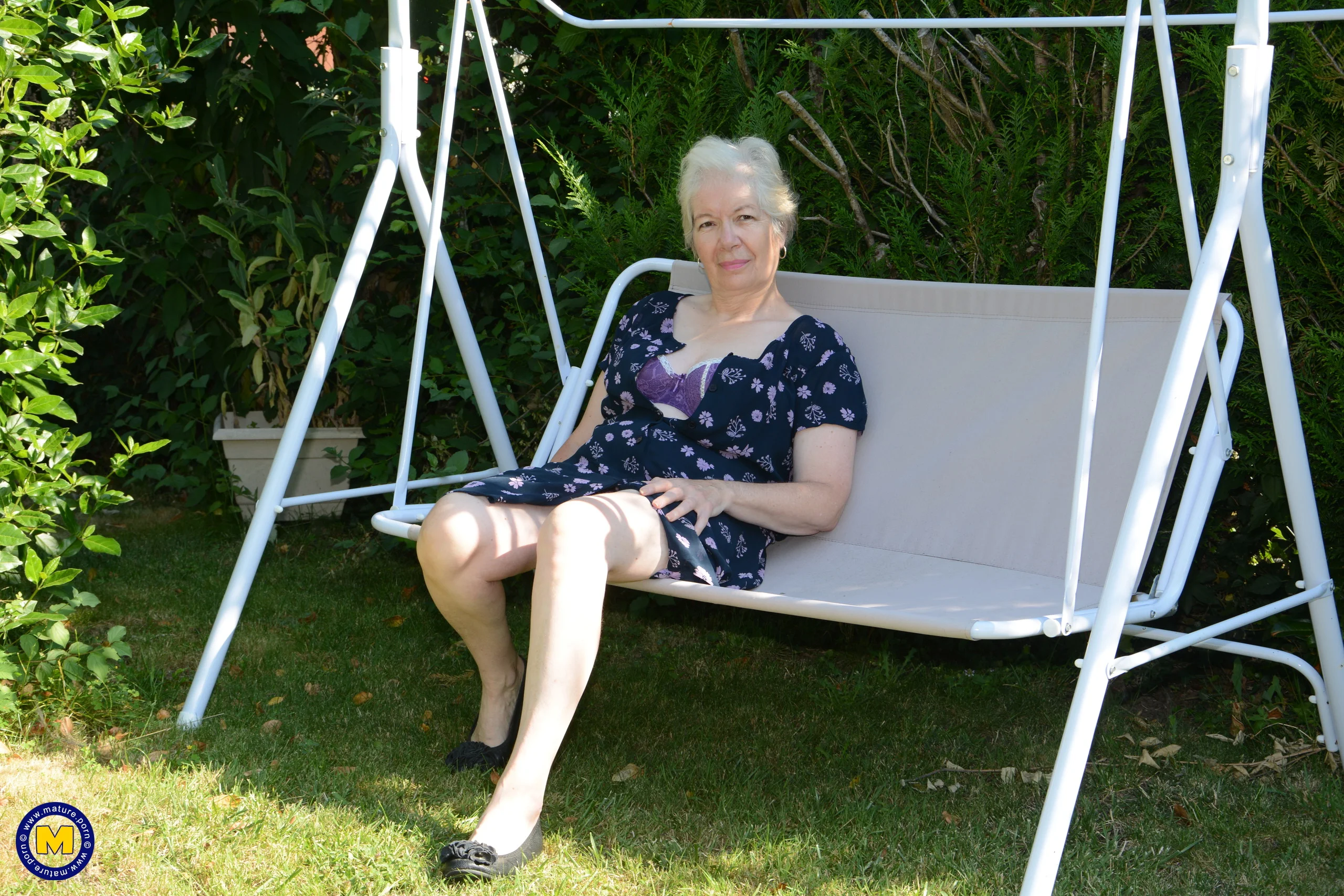 Beneath the warm afternoon sun, a sultry British mature woman teases in her lush garden, her curves illuminated by the soft light. She slowly slips off her clothes, revealing smooth skin that glistens with anticipation. Playfully exploring the vibrant flowers around her, she caresses herself with growing desire, lost in the freedom of the open air. Every touch and sigh is filled with raw passion, capturing the intoxicating blend of nature and seduction. Her confident, experienced movements invite you to share in this intimate, forbidden moment.