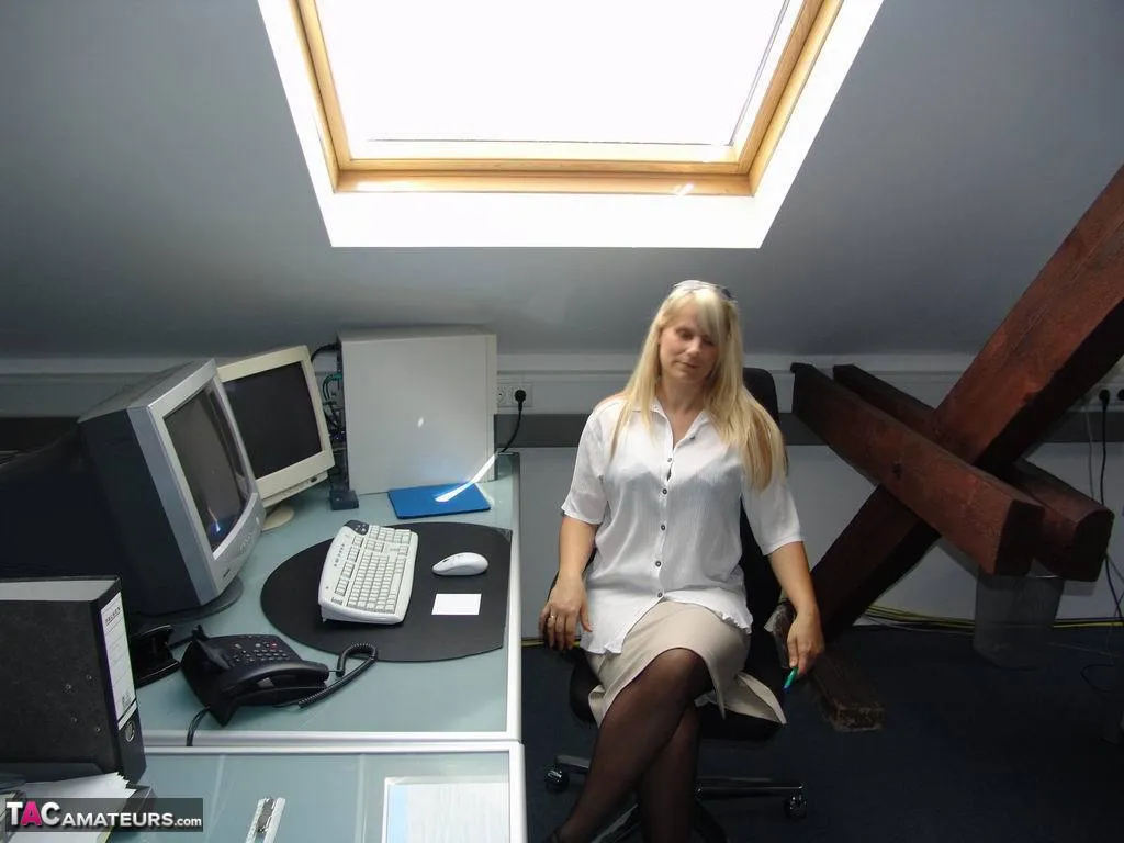 Im a blonde sexy Secretary and do the paperwork for my boss, if there is then I do crazy things, I pull myself out and g