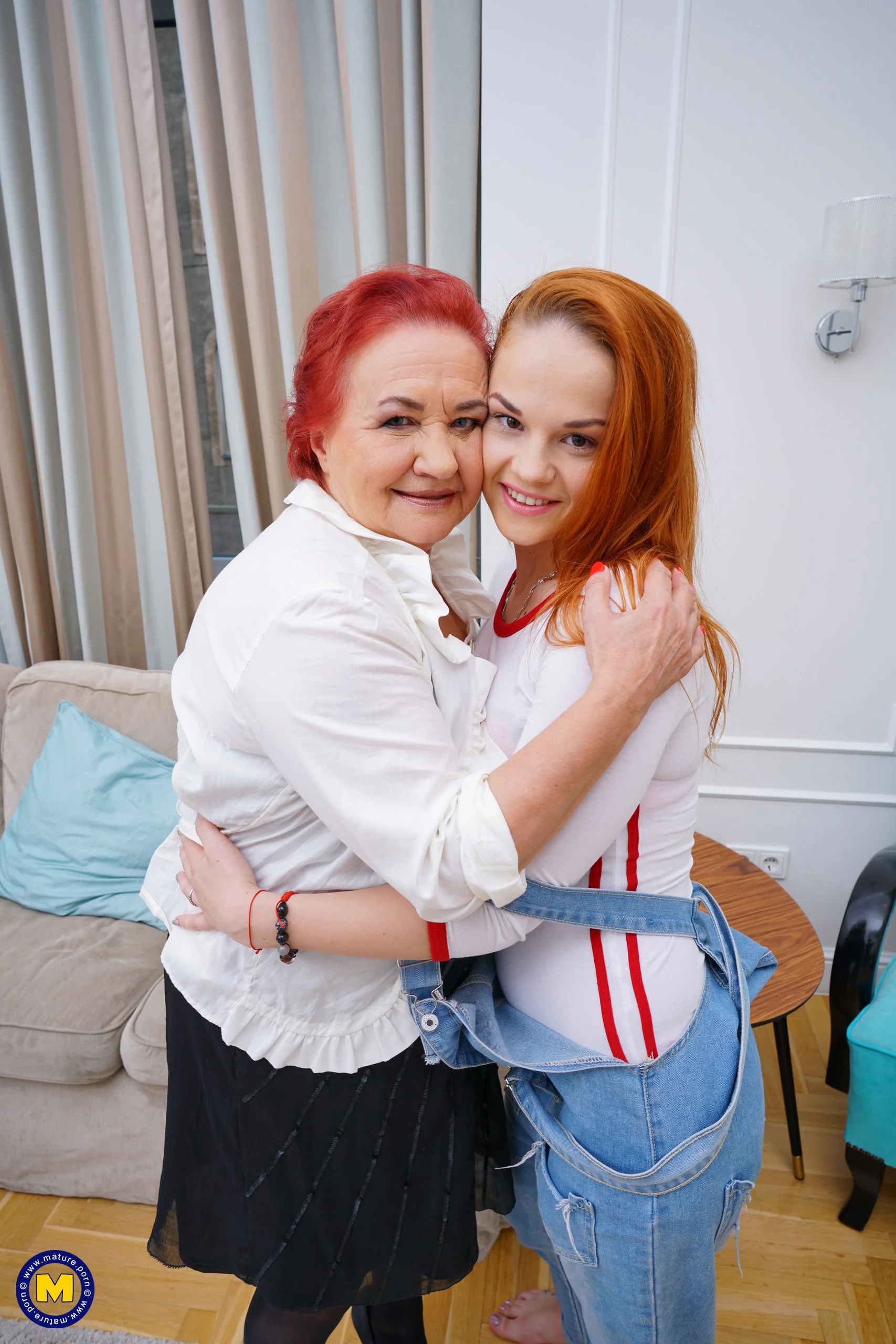 A fiery redhead with luscious lips eagerly explores every inch of her curvy, mature partner’s soft, hairy body. Their passionate connection ignites as she trails her tongue sensually along her lover’s warm skin, savoring the taste and texture. The older woman responds with deep moans, her hands tangling in the vibrant hair as desire builds between them. Their intimate play is a delicious blend of tenderness and raw lust, creating an irresistible heat that pulses through every touch and lick. Together, they lose themselves in a world of pleasure, celebrating their shared passion with every teasing caress.