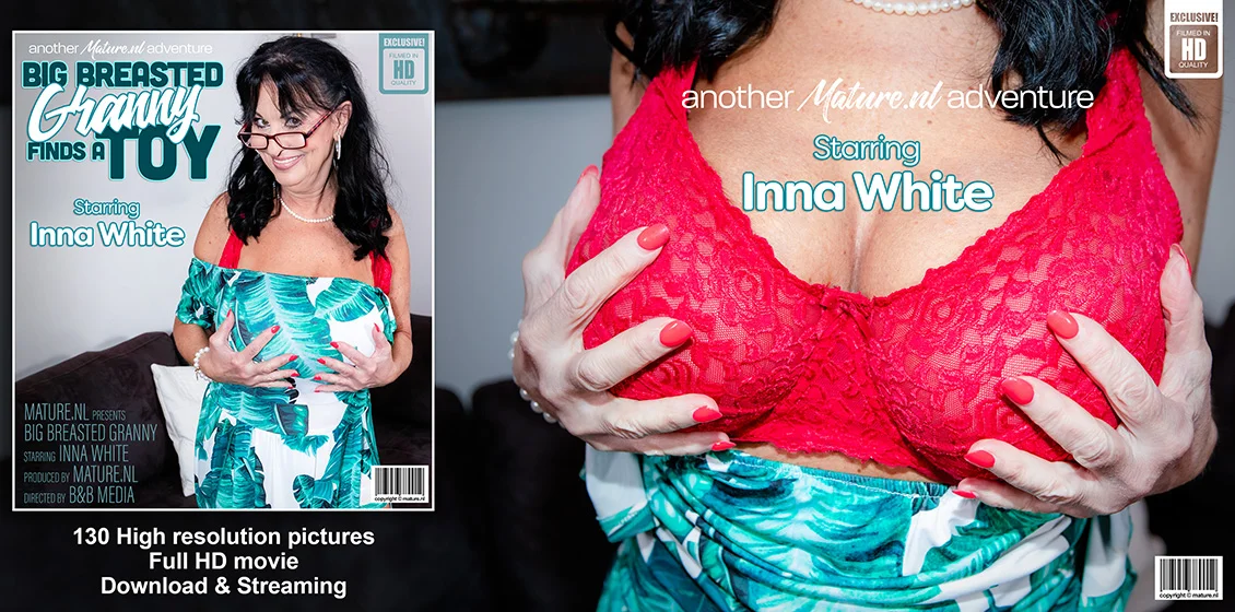 Inna White is a big breasted granny who loves to play with her unshaved pussy