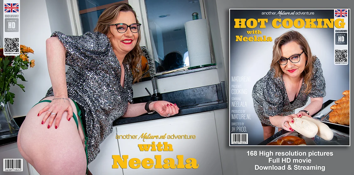 Kitchen time with mature Neelala while she's getting hot and steamy