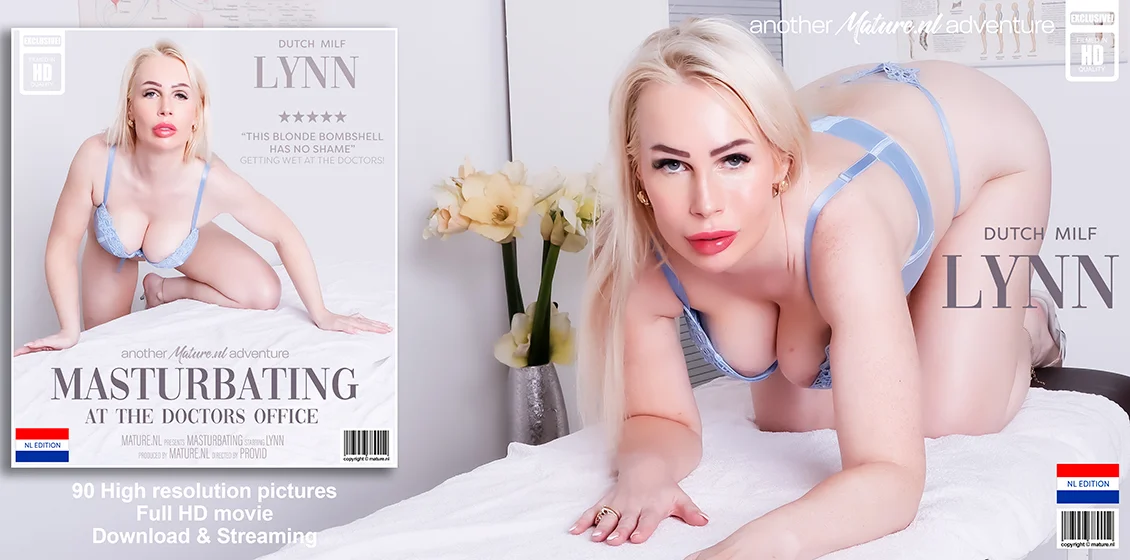 Lynn is ahot blonde Dutch MILF that masturbates and fucks the heel of her shoe in the doctors office