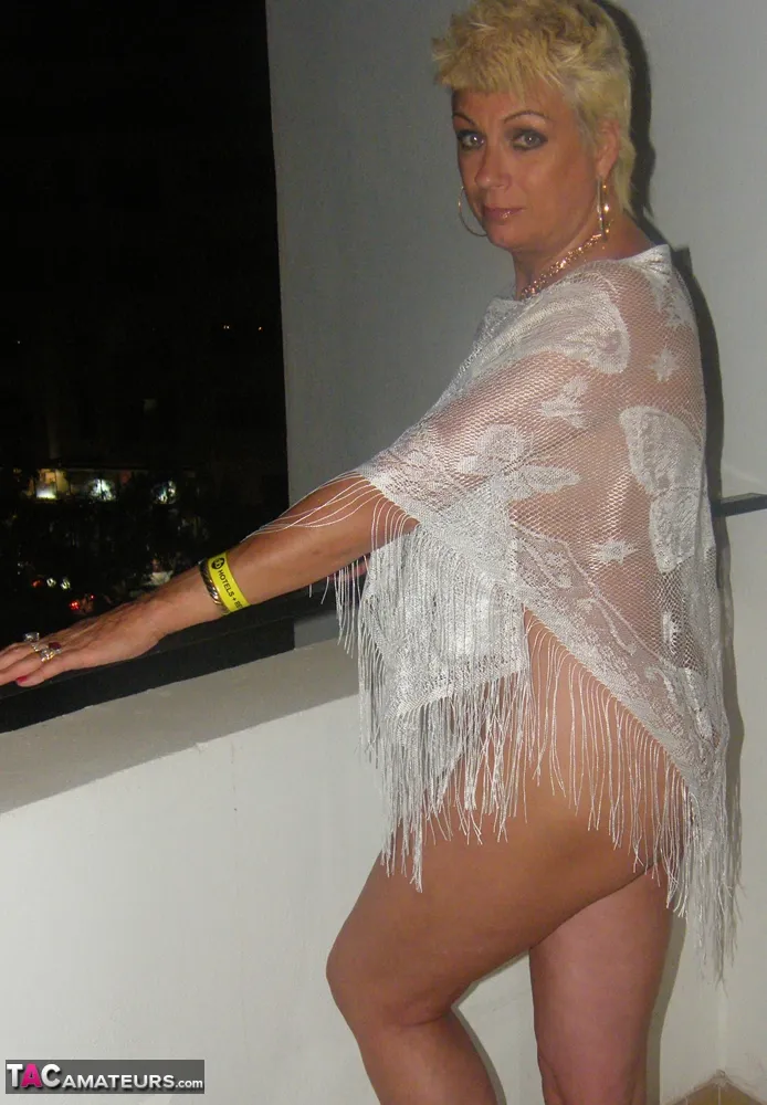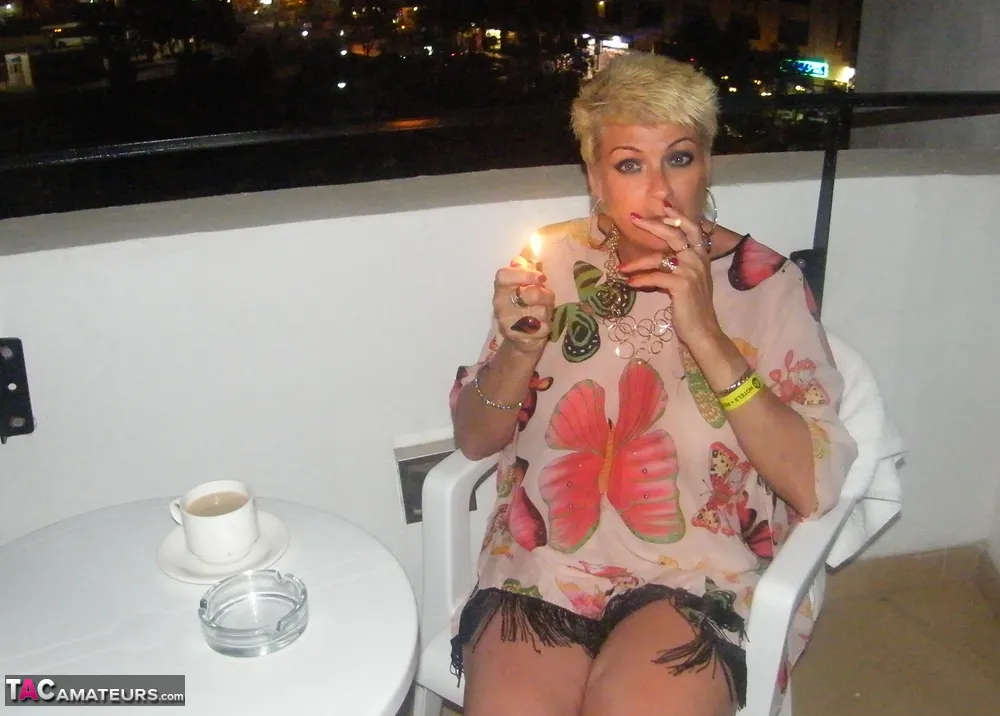 Here I am in Malta smoking in my dress and no panties and showing off my pussy. Showing off my lace poncho I brought wit