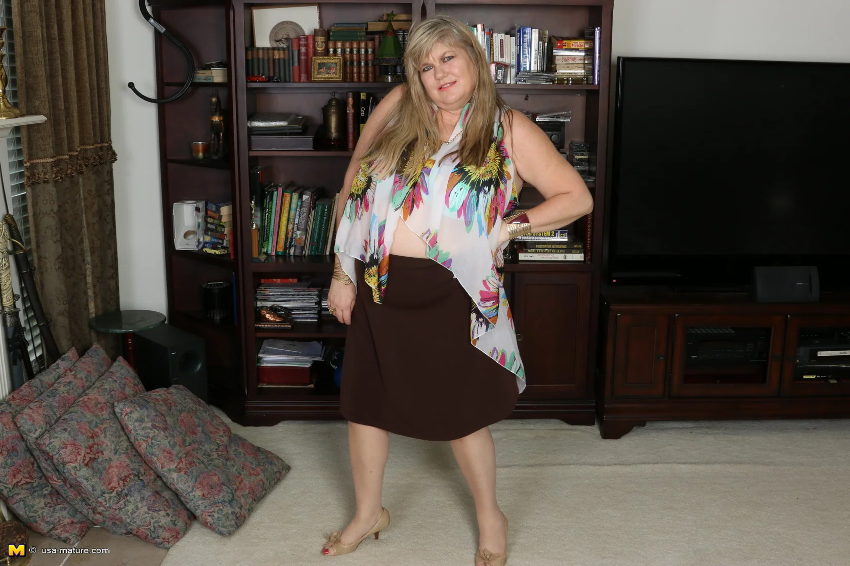 A stunning mature American BBW takes center stage, radiating confidence and sensuality as she explores her deepest desires. Her soft curves and inviting smile draw you in, while her hands roam freely, teasing every inch of her luscious body. She slowly undresses, revealing supple skin and ample assets that beg to be touched. With every gentle stroke and sultry glance, she invites you to share in her private moments of pleasure, building anticipation until she reaches a breathtaking climax. The passion and raw intimacy in her eyes make this sensual experience unforgettable.