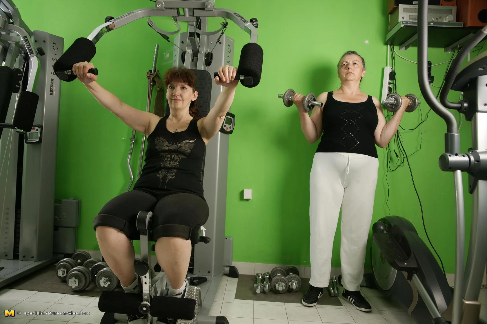 Mature women getting naked during gymclass
