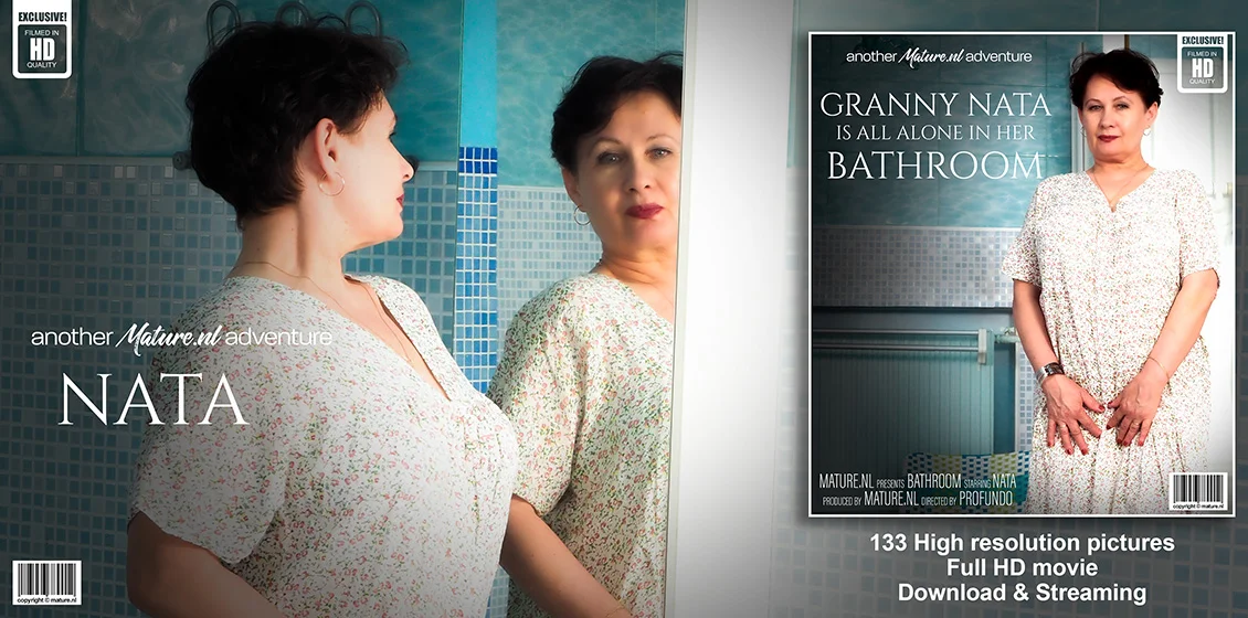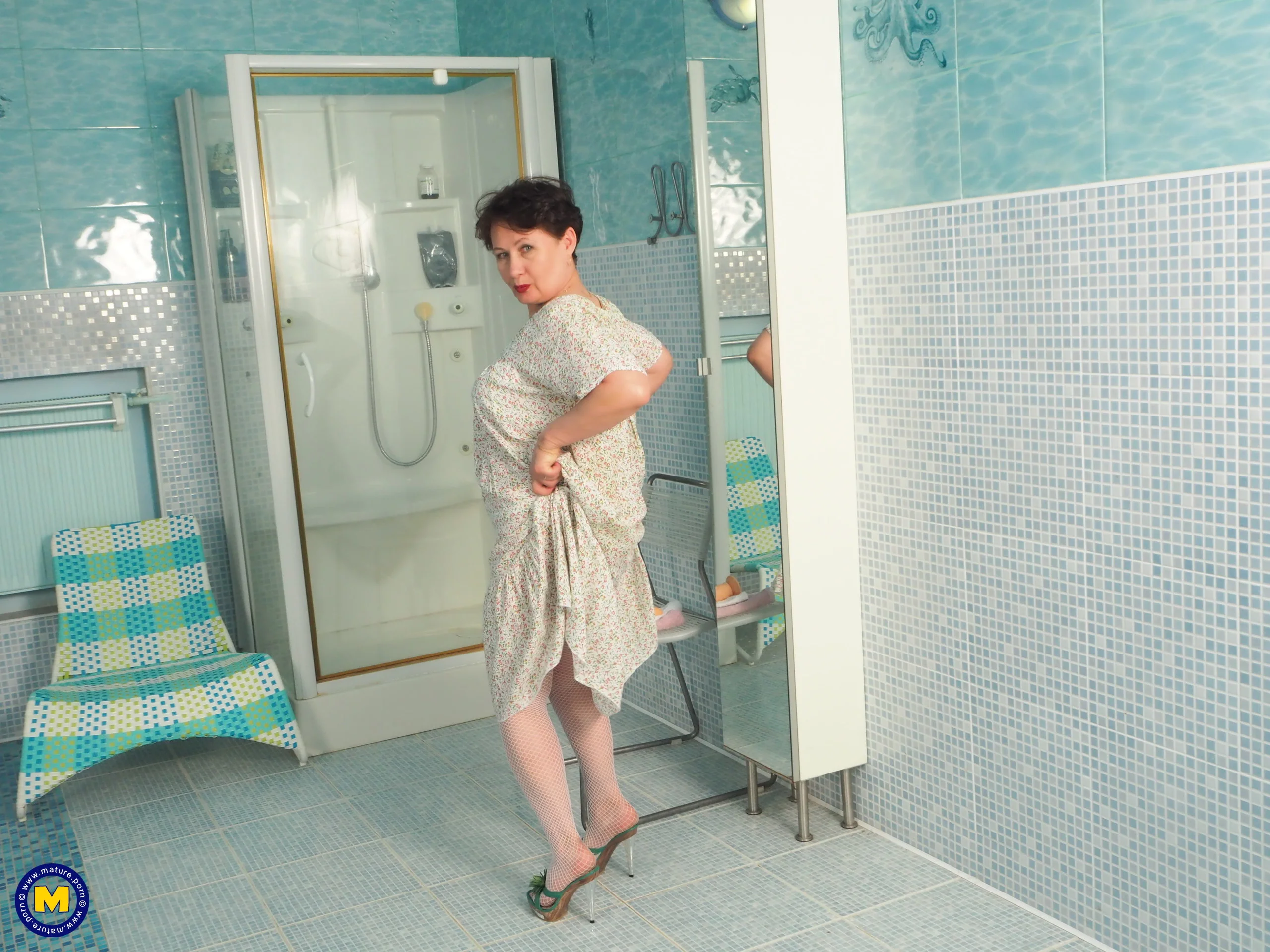 Modern Grandma Nata loves to play with her dildo and her pussy in the bathroom