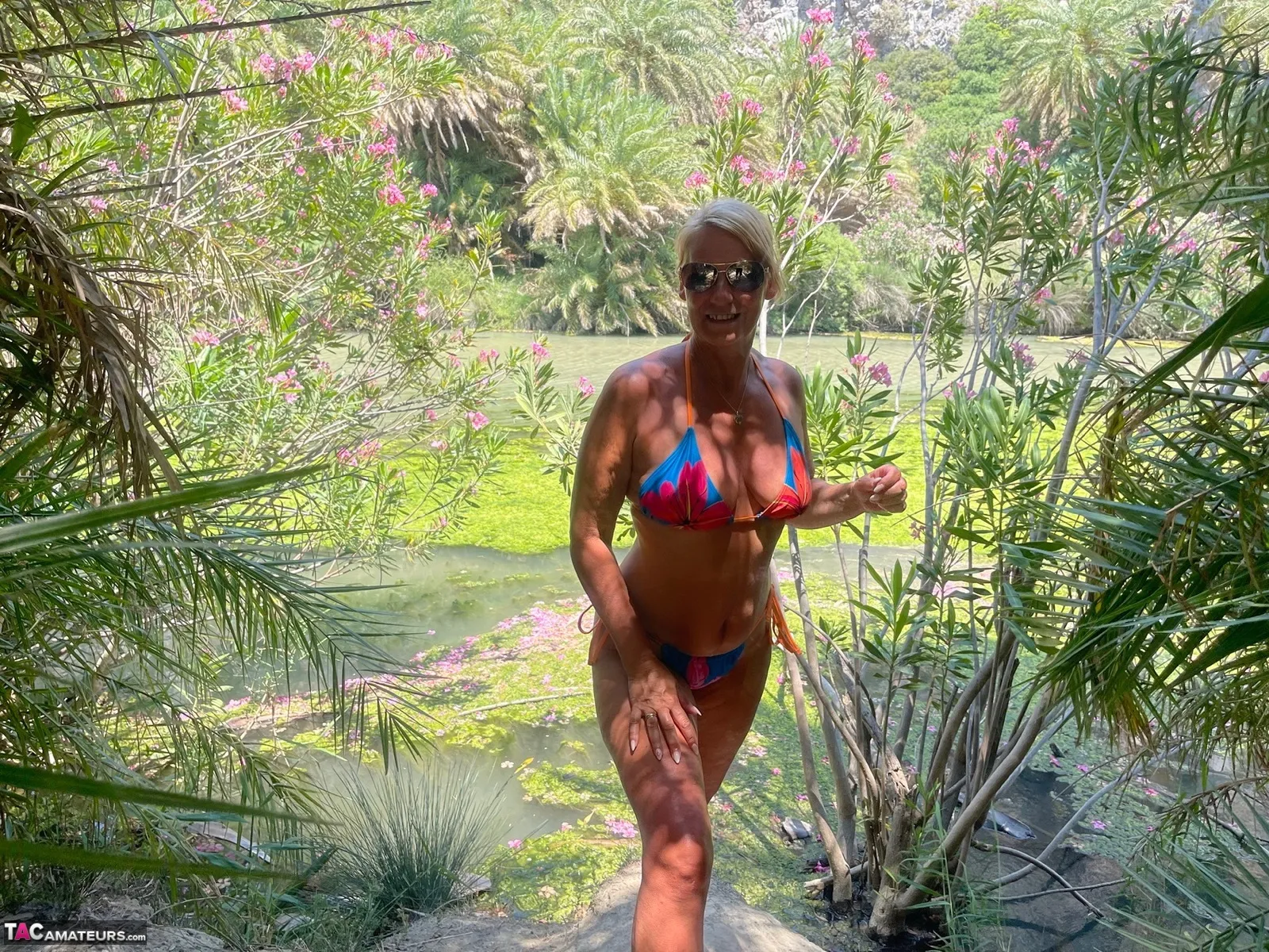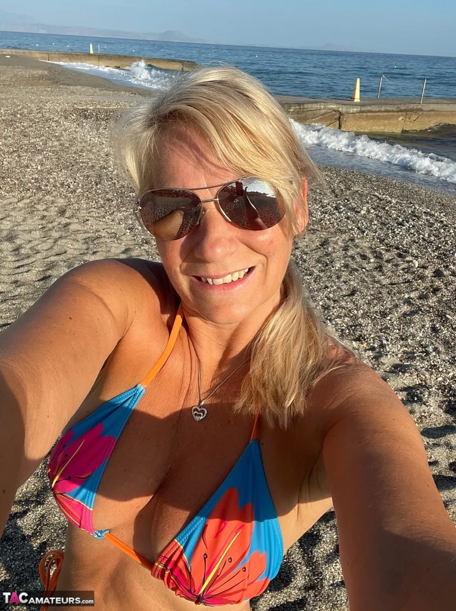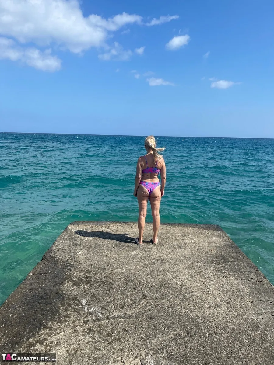You can see my colorful bikini here. I was on Crete in Greece and it was very nice. My girlfriend was also there and we