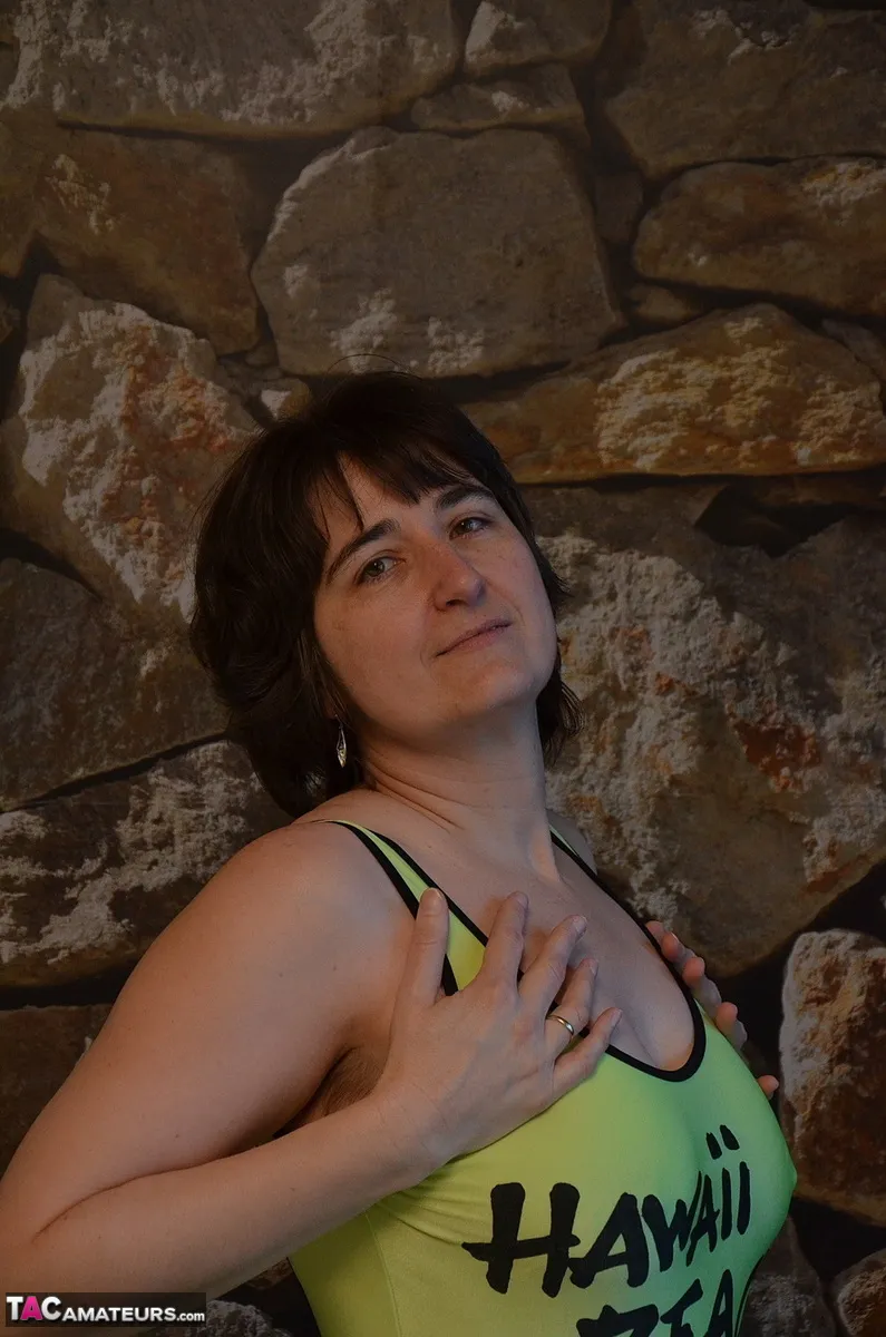 Posing on the sofa.In the yellow swimsuit as requested by a User.Well, I like to do that.Im gelben BadeanzugPosing auf d