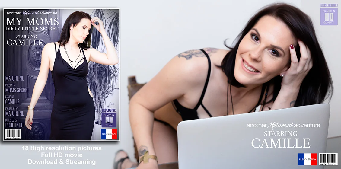 Naughty French mom Camille is masturbating at the office