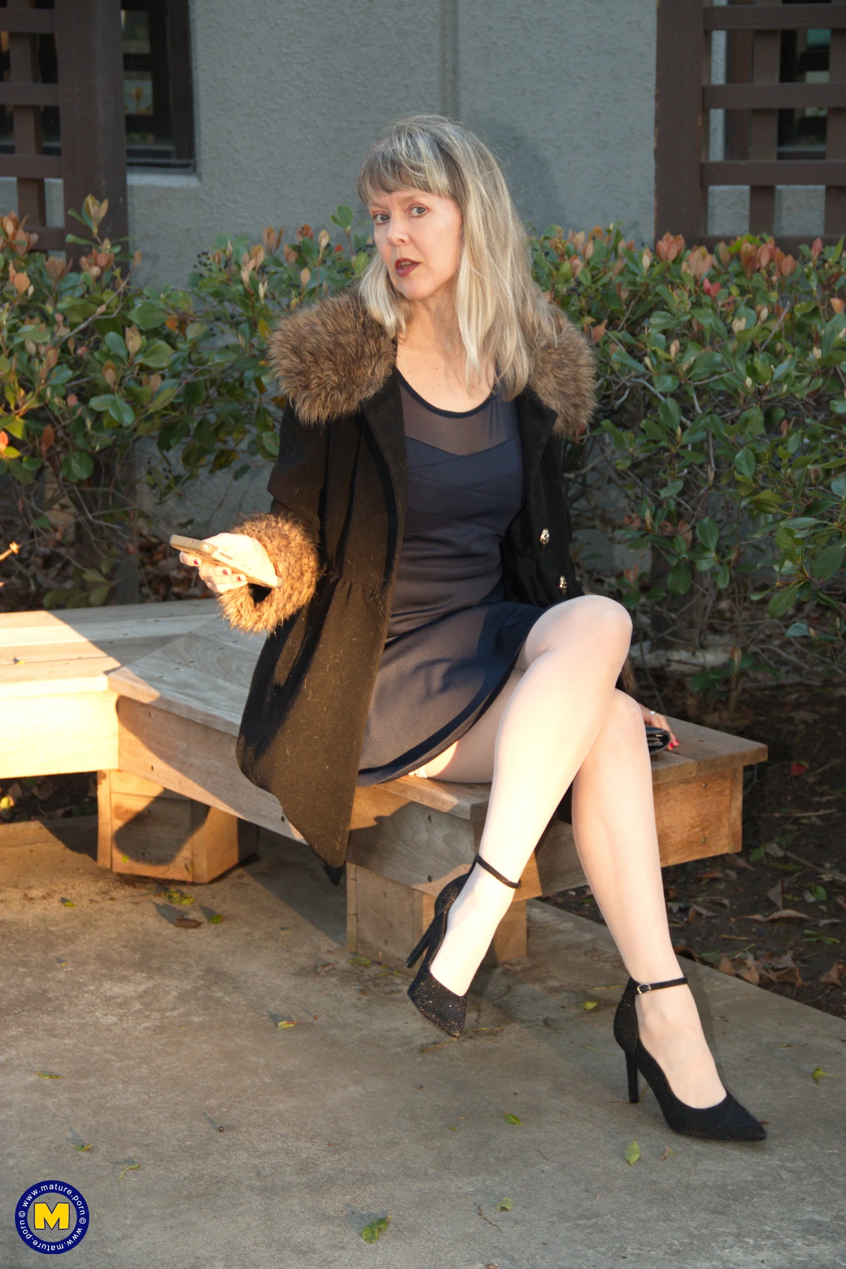 A stunning mature woman seductively teases in her high heels and sheer pantyhose, the soft fabric clinging to her smooth legs as she slowly explores her body. Her confident hands glide over every curve, igniting a fire that radiates from her deep, sultry eyes. With each tantalizing touch, she reveals a hunger that’s both playful and intense, lost in the pleasure she creates all on her own. The subtle rustle of her stockings and the rhythmic motion of her fingers invite you to watch and imagine the secret desires she’s fulfilling. This intimate moment captures the irresistible allure of experience and passion perfectly combined.