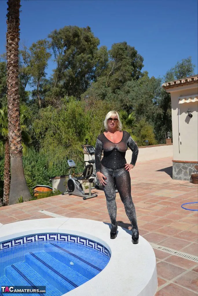 I thought I'd try out a new style swim suit but it soon became apparent that the body stocking is better for fucking in.
