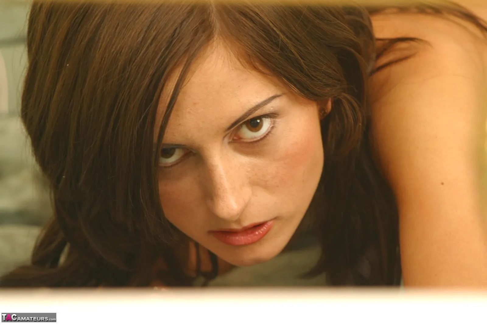 Nina's boyfriend sent in this set of photos, with her permission, of course. This leggy brunette loves the thought of me
