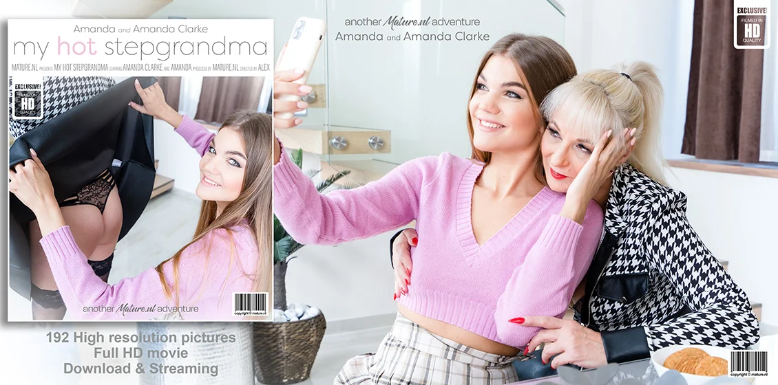 Old and young lesbians Amanda and young miss Clarke get it on in the livingroom