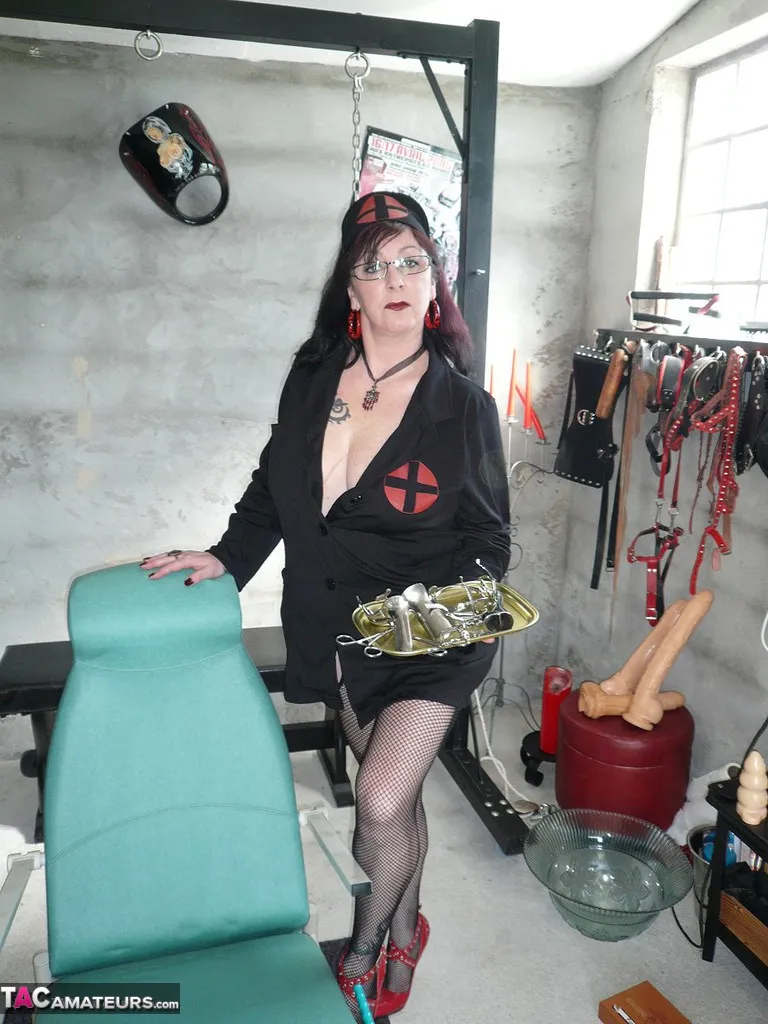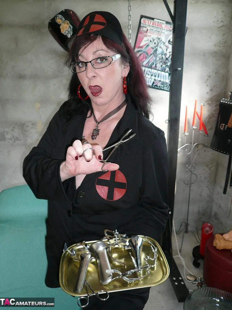 With nurse uniform, I show my ass my pussy, I play with metal toys and I open my pussy with a speculum.