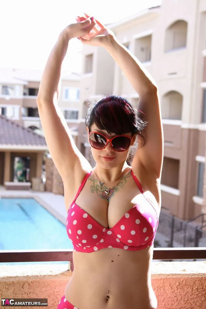 This polka dot bikini is what I usually wear to the pool. I would really rather wear nothing at all, but sometimes that'
