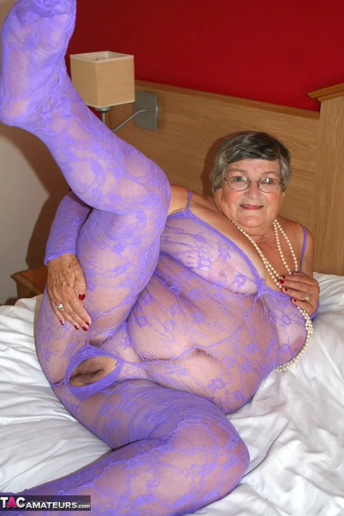 Grandma gets sexy on her bed showing off that gorgeous BBW body, big breasts and wet pussy.