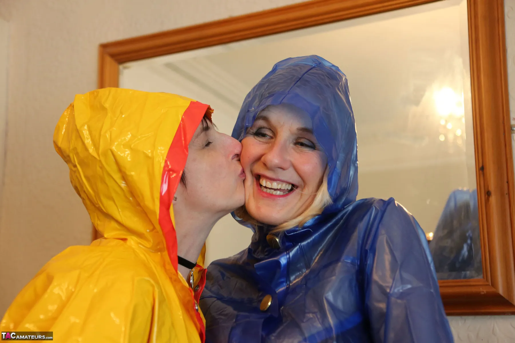 Just look at these gorgeous ladies in their sexy Plastic Raincoats, come and shelter from the rain with these 2 sexy lad