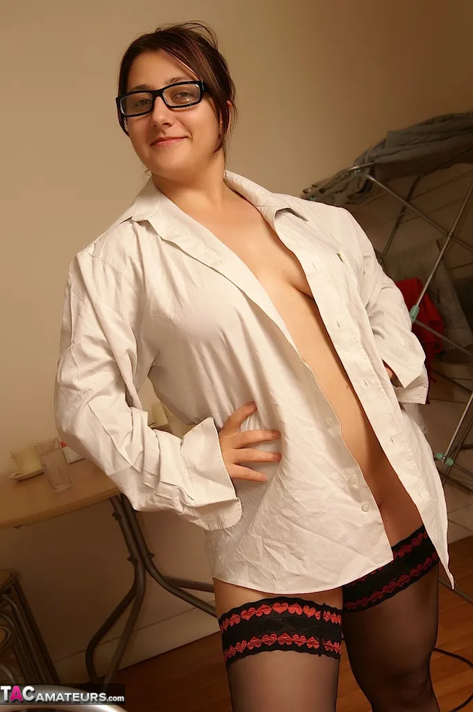 I was getting ready to go to bed when my boyfriend asked me to pose for him in his work shirt like a naughty secretary.