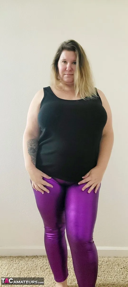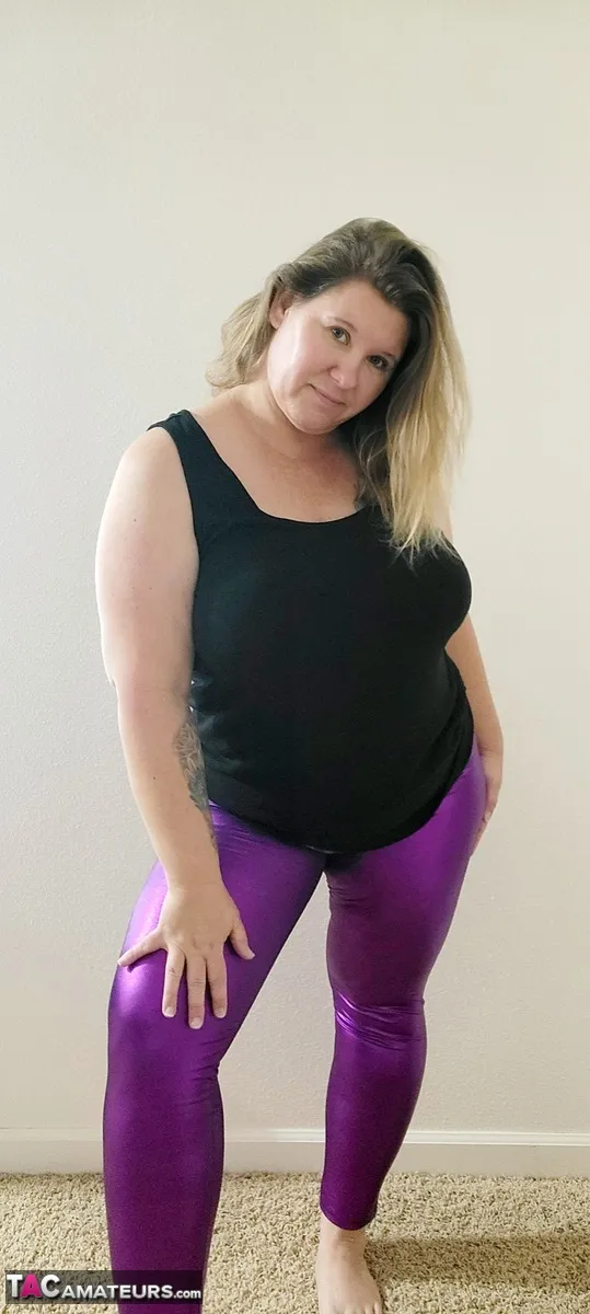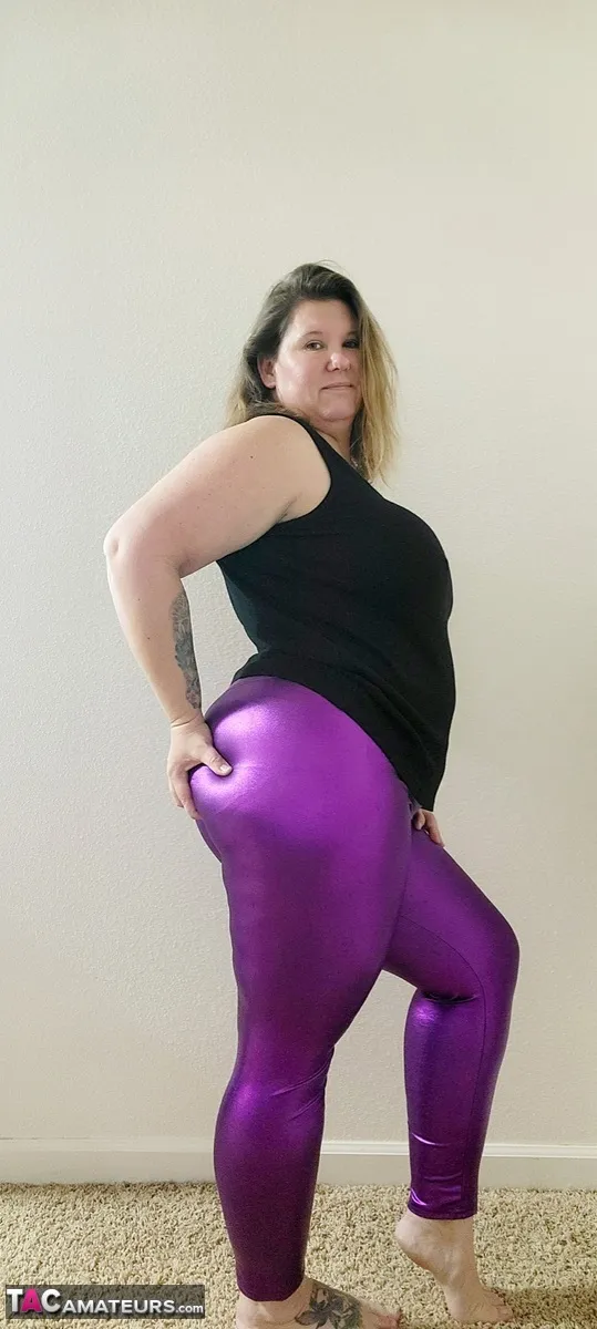 Let me tease you with my very purple leggings. I know your a loser that's weak for shiny leggings and I like to push you