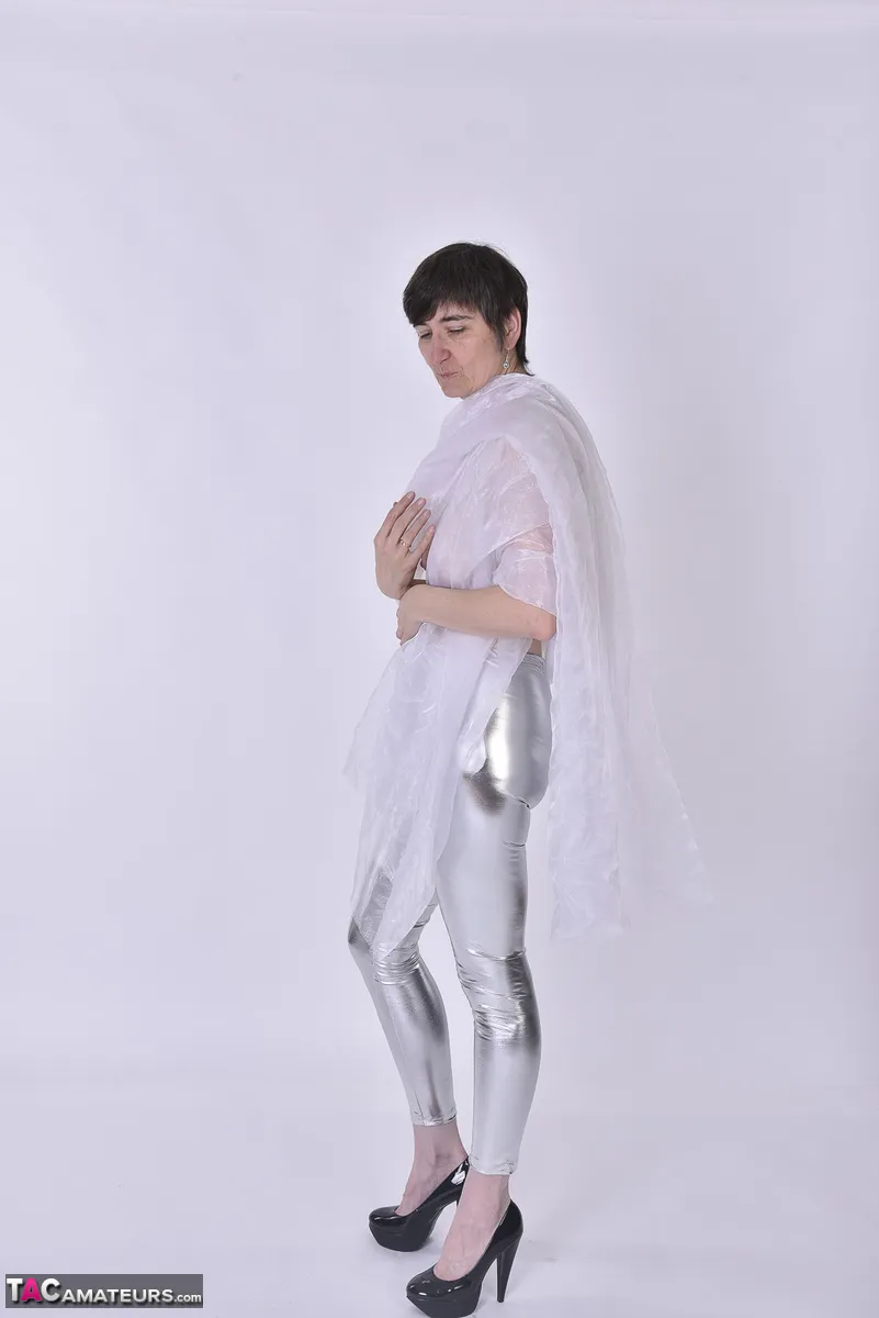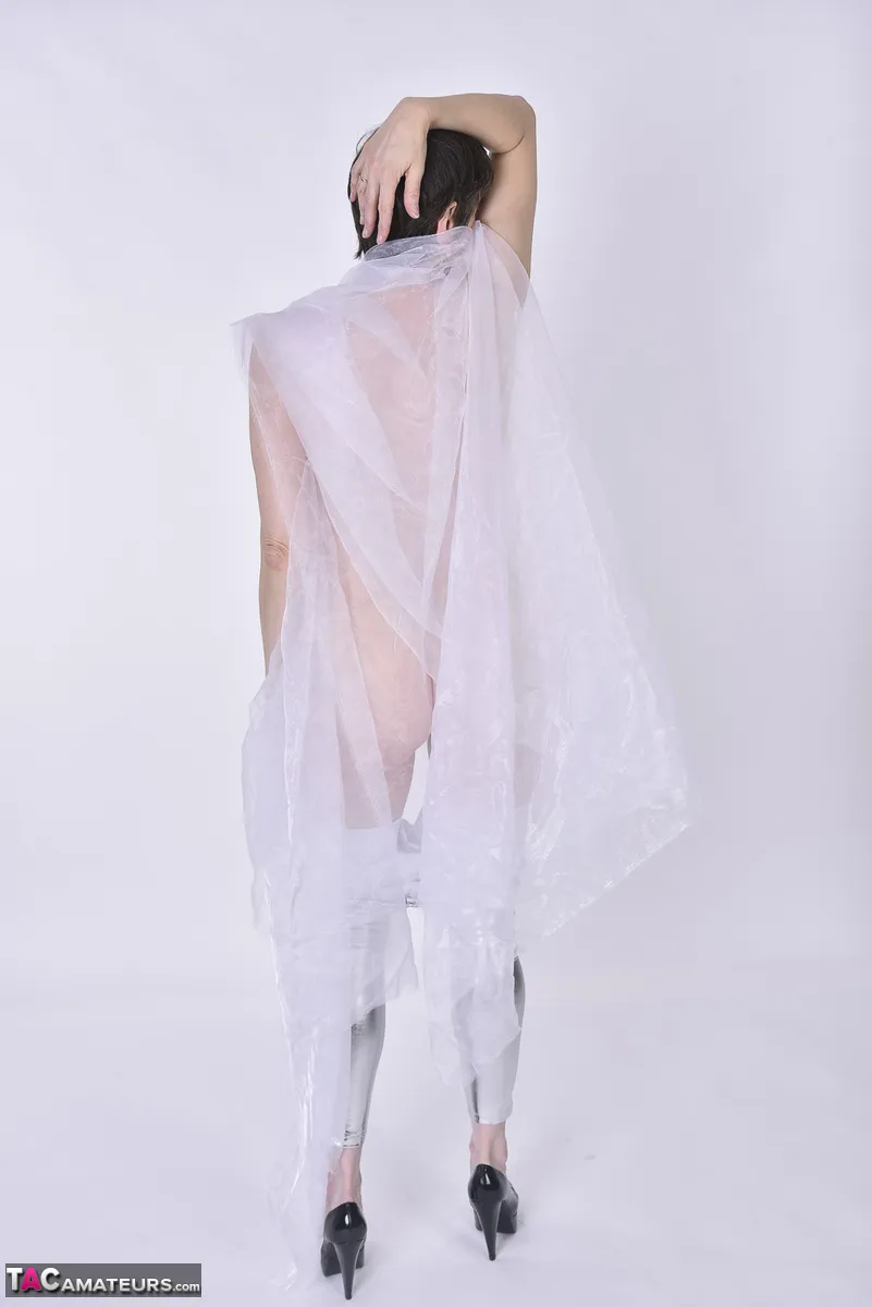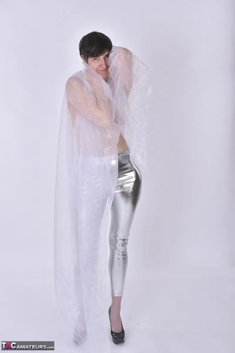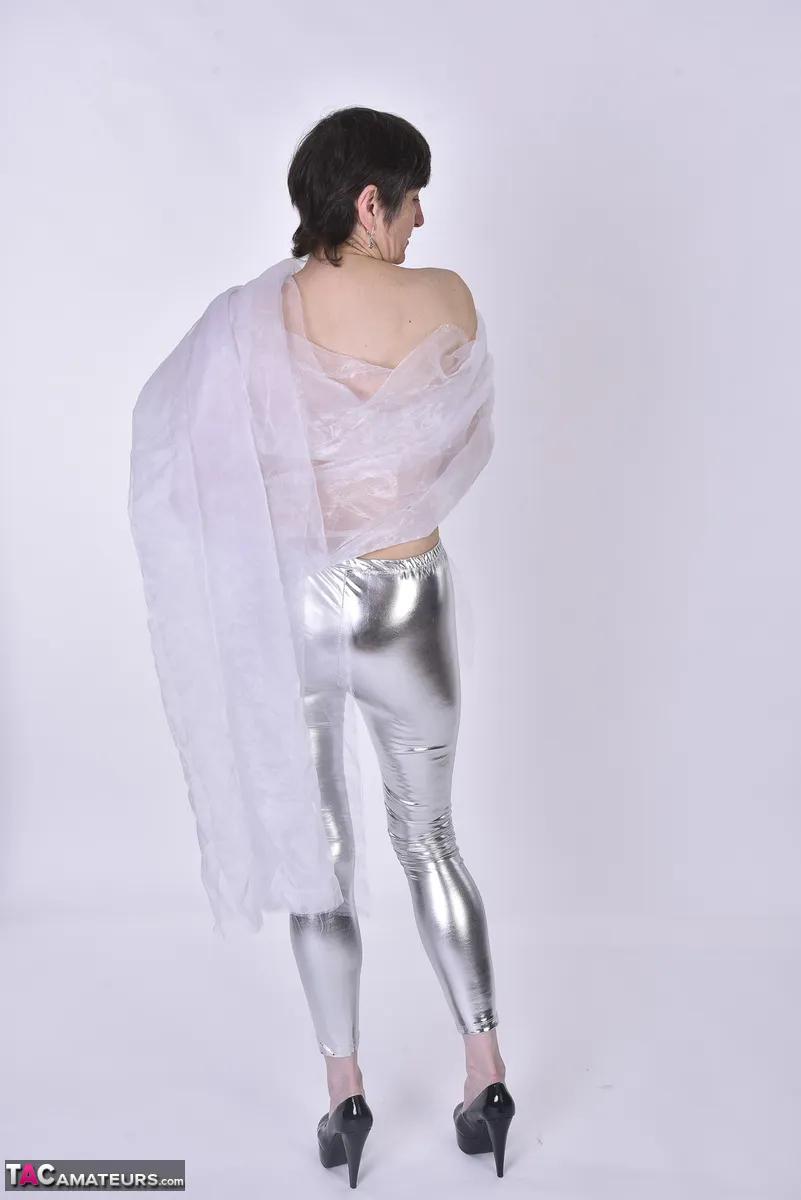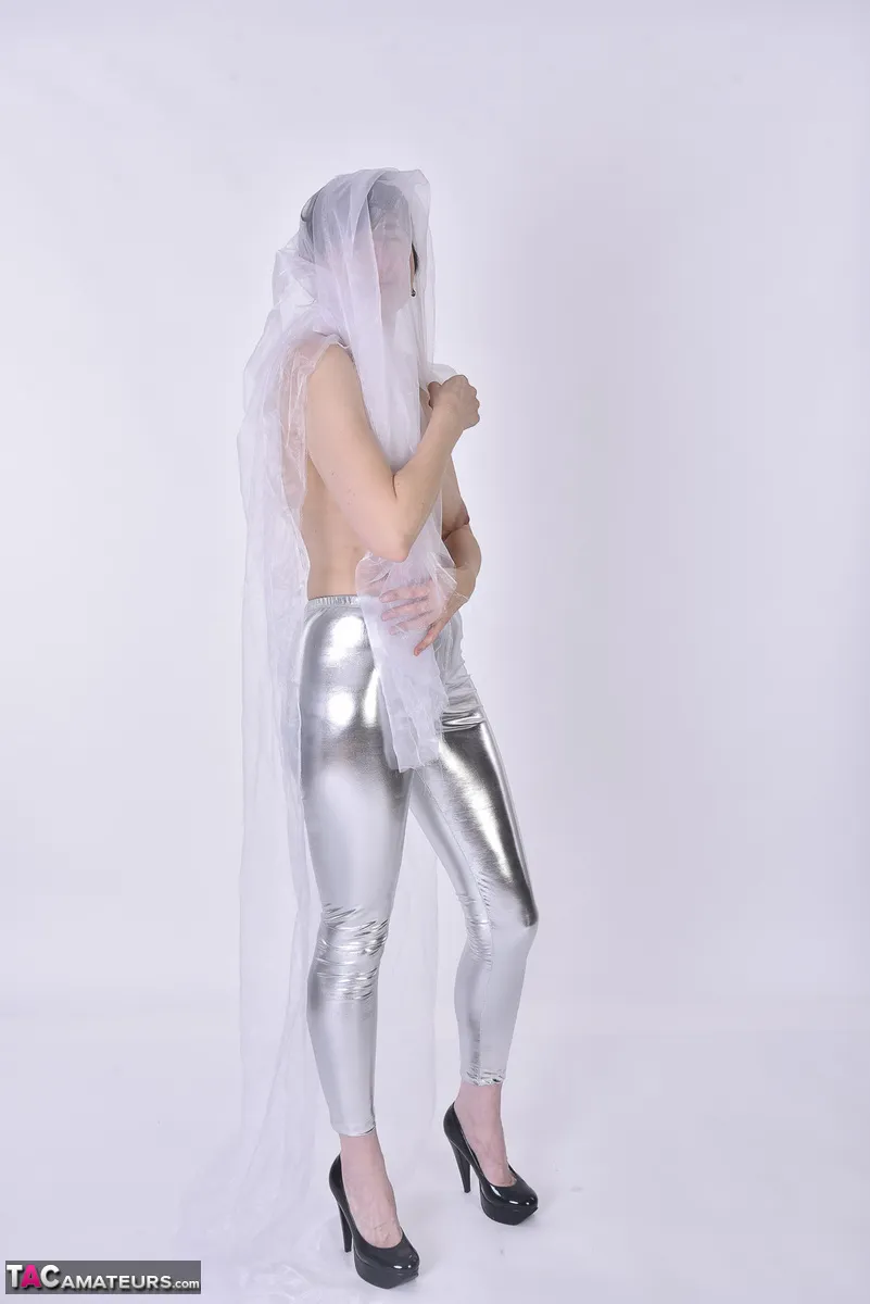 Playful pictures set.In the shiny silver pants and a delicate cloth.So you can also make beautiful pictures.