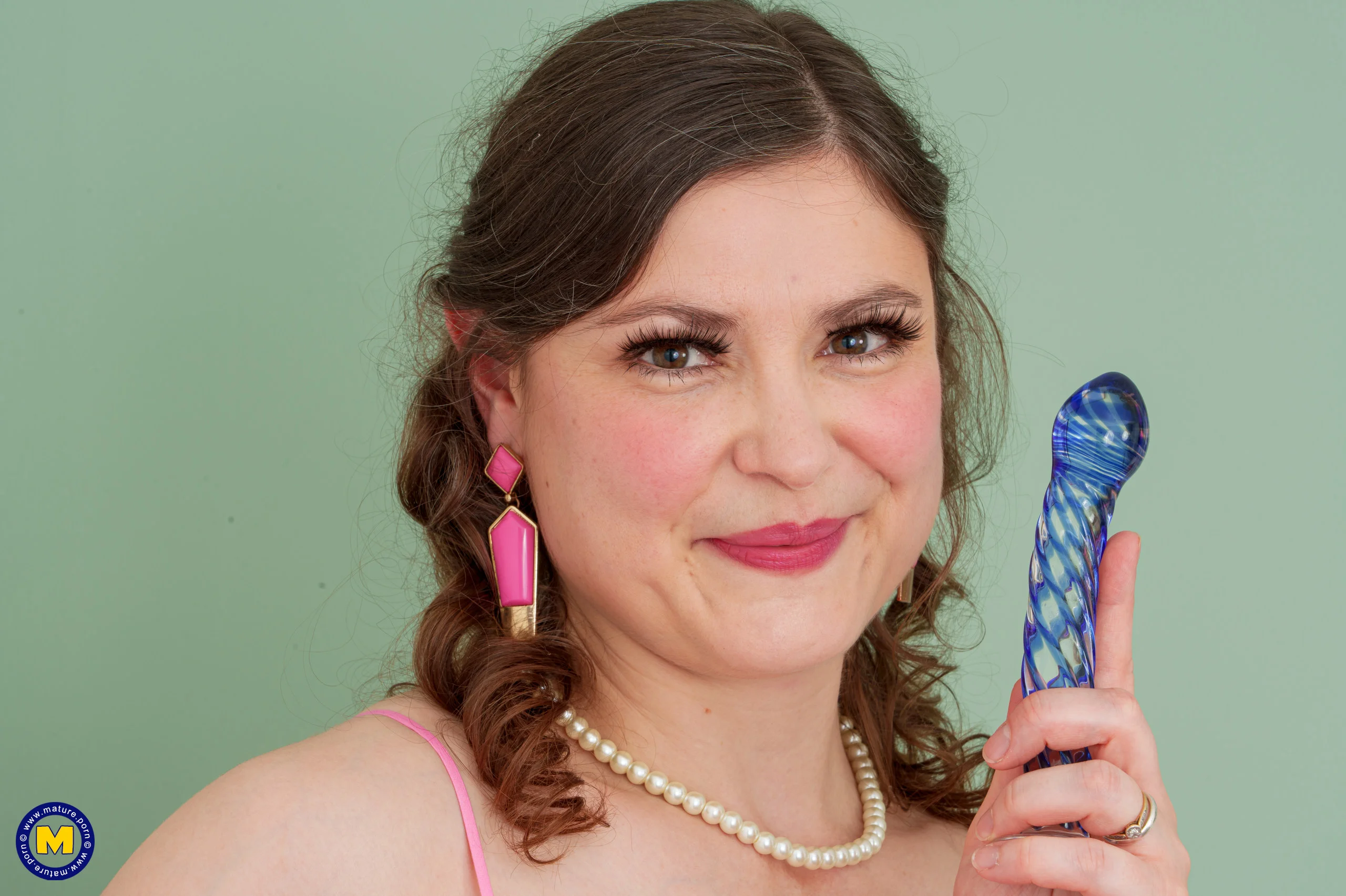 Small breasted and shaved MILF Aurora Frost loves playing with her naughty toy