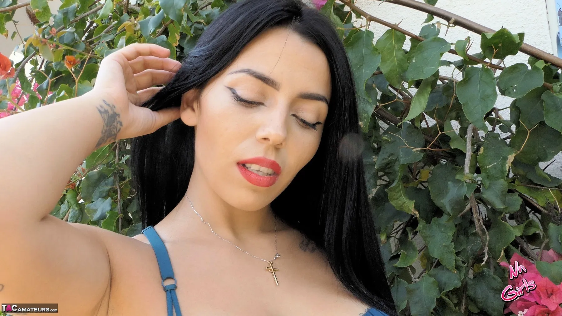 Spanish stunner Yasmin posing in the garden
