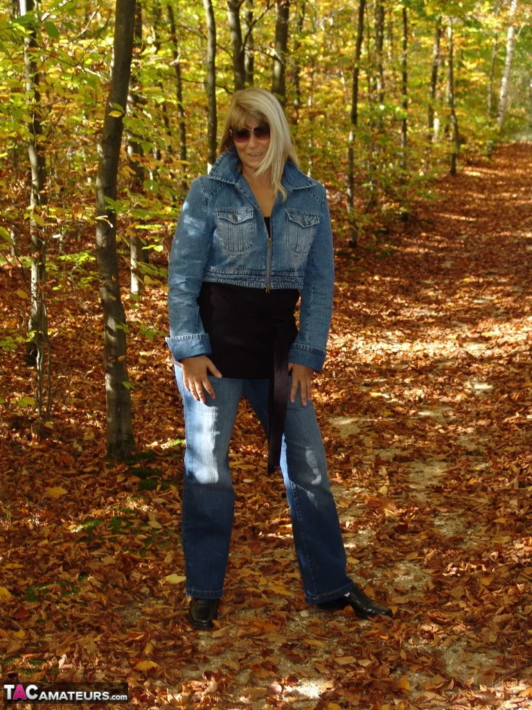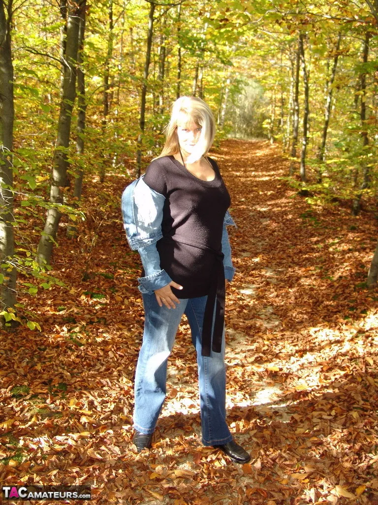 In suspenders under the jeans nobody knows that I'm going into the forest like this. I take a walk for a while and alway