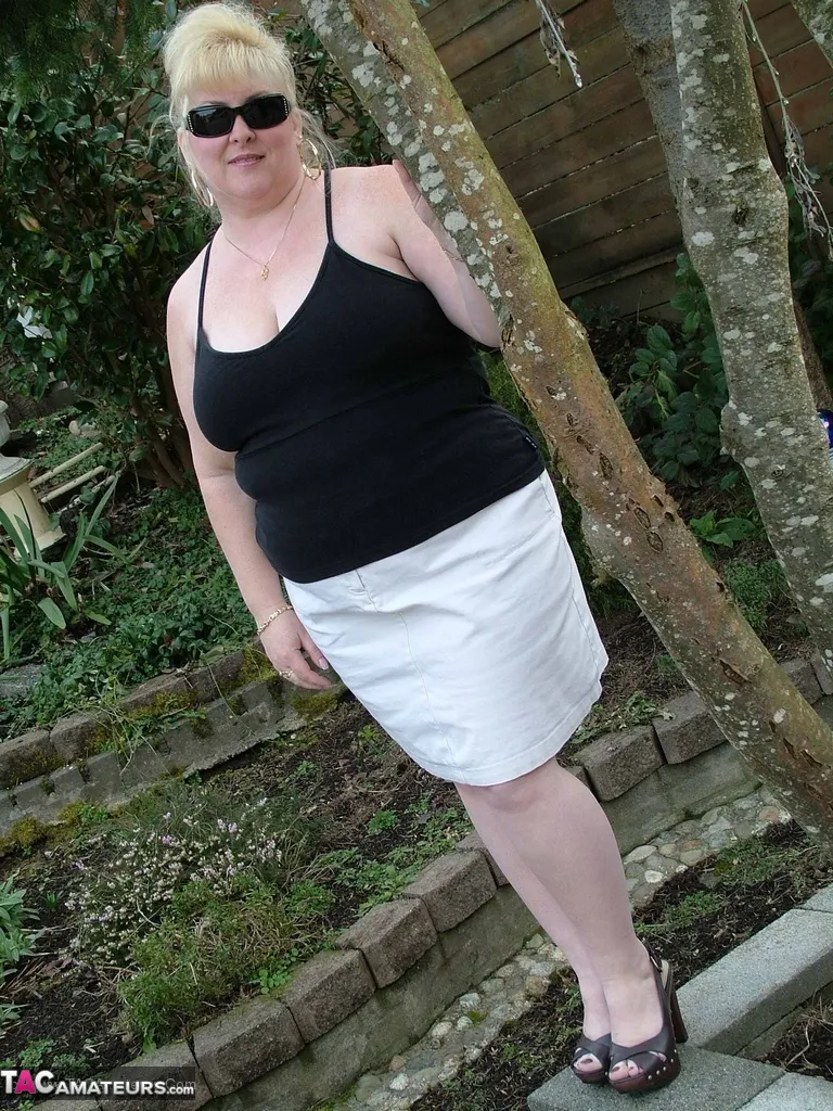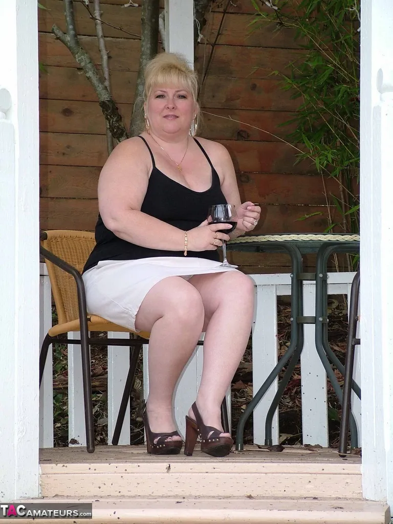 Tan Mini in back yardIt was a nice sunny day out, so we decided to go out back for a glass of wine.Wine tends to get me