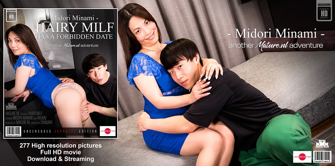 This toyboy has a forbidden date with hairy MILF Midori Minami