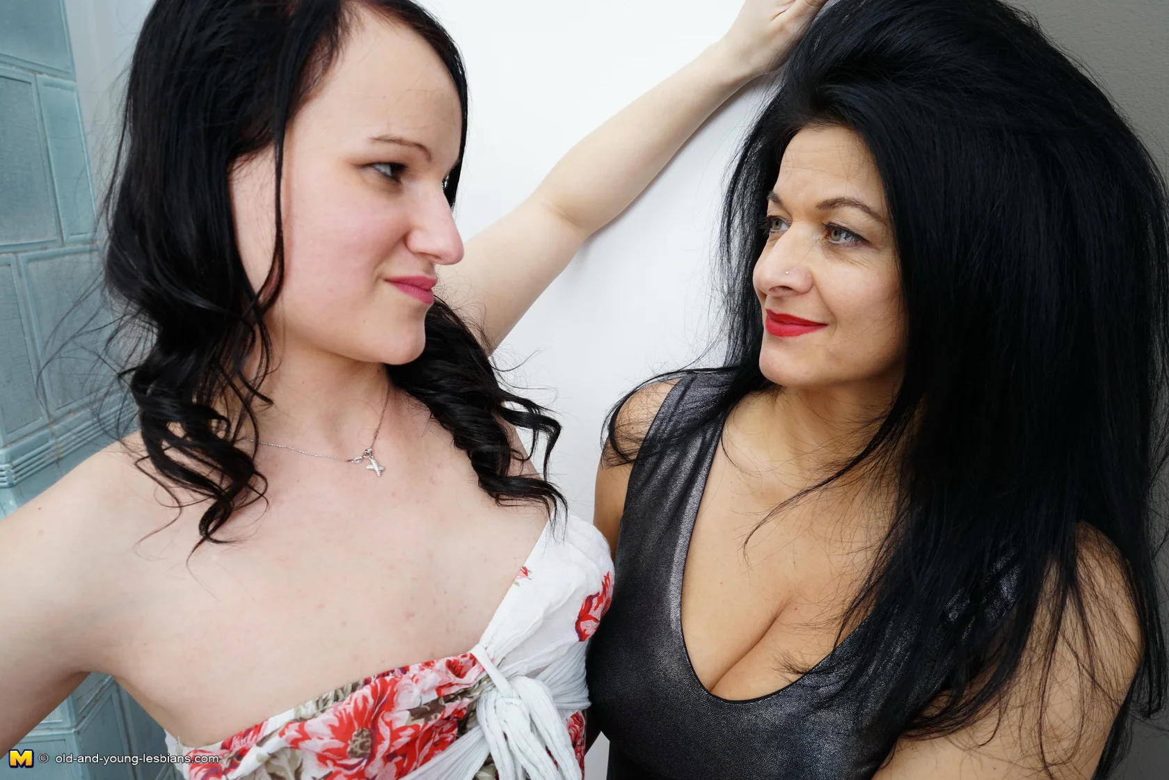 Two hot old and young lesbians get wet on bed